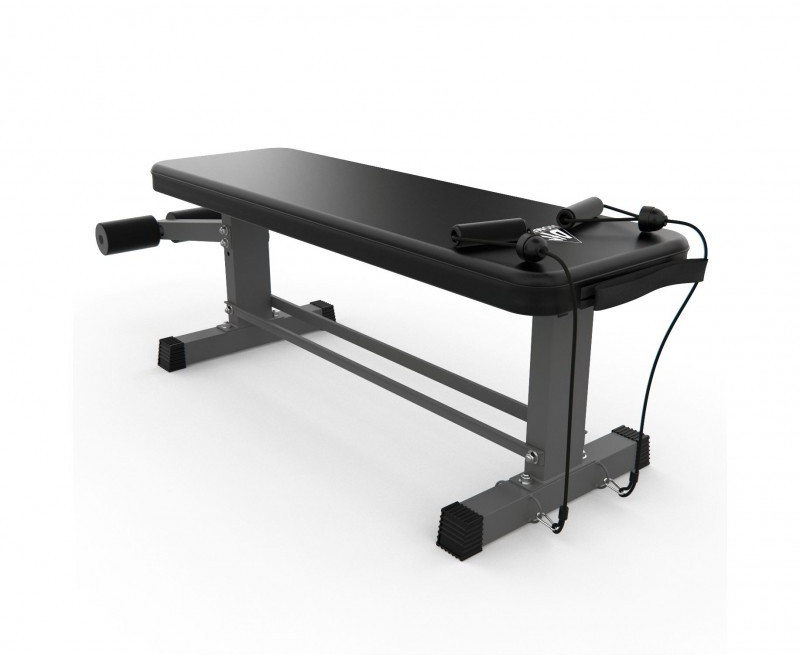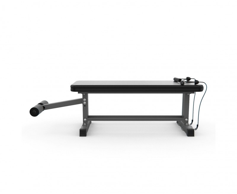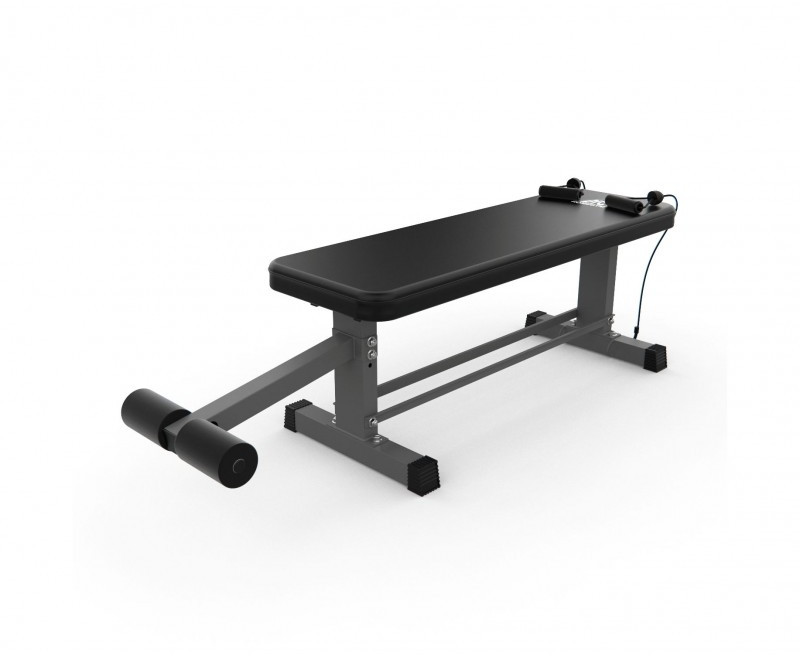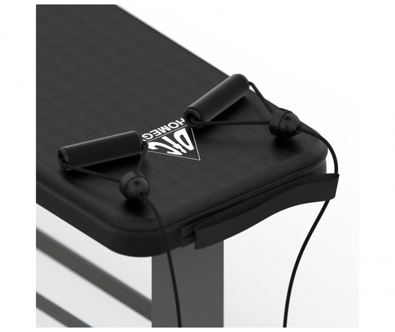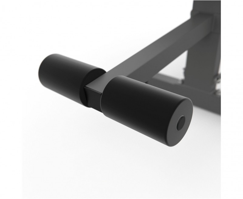 Скамья дополнительно оснащена креплениями для гантелей для удобного хранения, а также быстрого доступа к ним во время тренировки. Валик для ног диаметром 7,5 см и длиной 13,2 см с надежным креплением длиной 34 см. Эспандеры, поставляющиеся в комплекте длиной 80 см служат для дополнительного укрепления мышц рук.