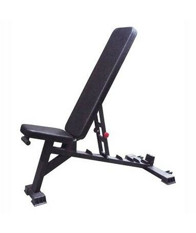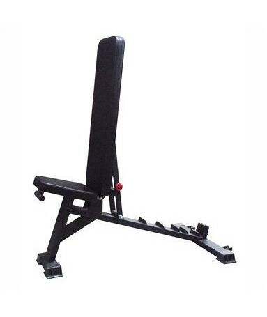 - Спинка снабжена механизмом линейного перемещения, который при помощи фиксатора-упора позволяют изменять угол ее наклона так, чтобы наклонная скамья преобразовывалась в скамью для жима под углом вверх или в стул.