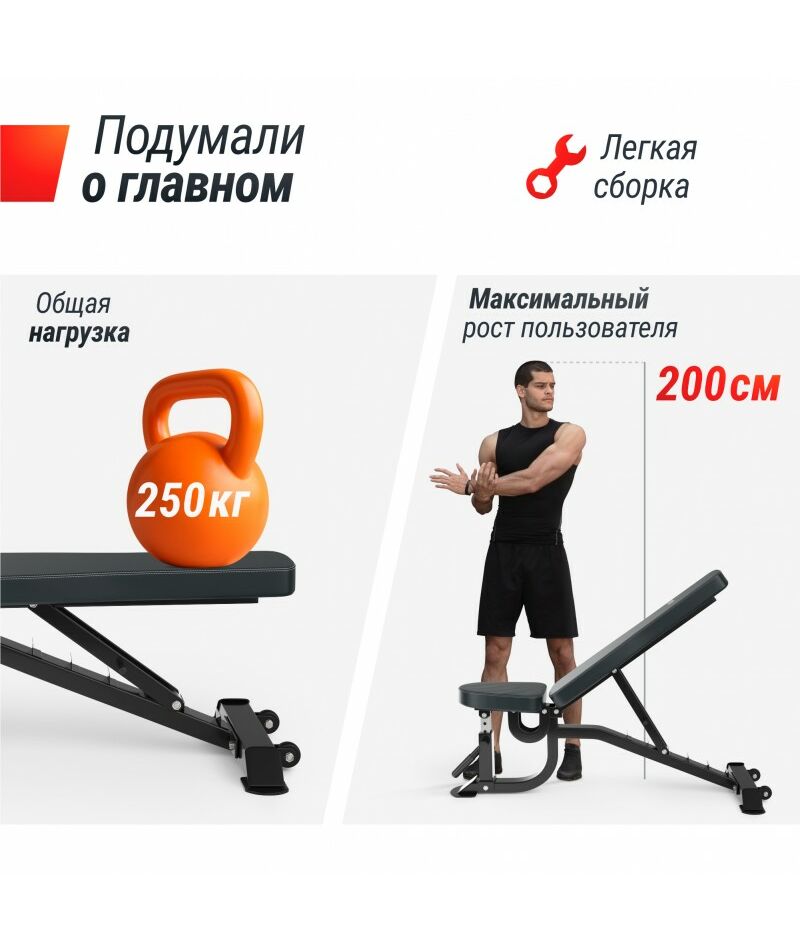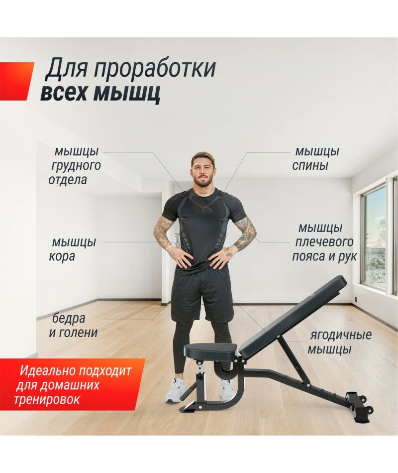 Тренировки на регулируемой силовой скамье BENCH 200R способствуют развитию мышечной массы, укреплению пресса, мышц спины, груди и рук. Благодаря своей универсальности многофункциональная скамья позволит эффективно прорабатывать ягодицы и ноги. Вы разовьете силу воли, выносливость, сможете похудеть и сформировать идеальное подтянутое тело, не выходя из дома.