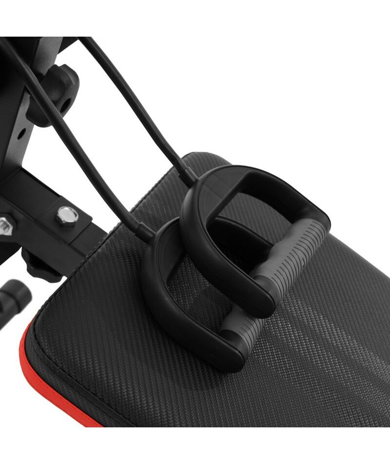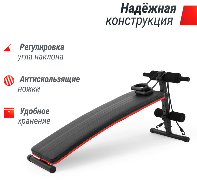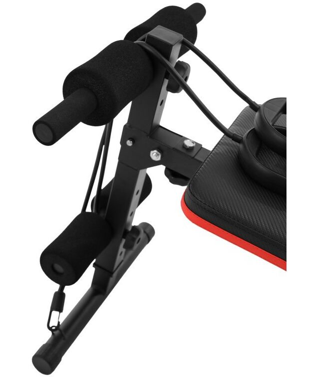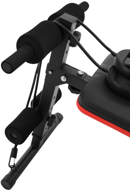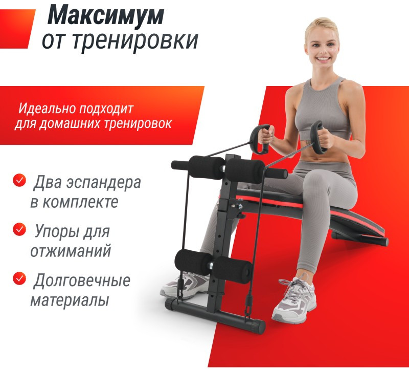 Тренажер для пресса изогнутой формы с 2 эспандерами оснащен удобным сиденьем и подушкой для спины, что обеспечивает комфортную работу в течение длительного времени. Она также имеет 5 регулировок угла наклона, что позволяет настраивать интенсивность тренировки в зависимости от вашего уровня подготовки. Благодаря дополнительным упорам, тренажер можно использовать как скамью для отжиманий.
