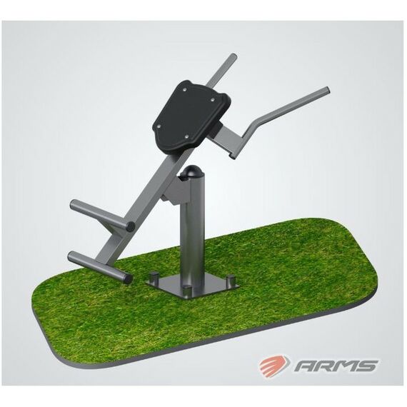 - Пользователь встает на платформу, передней частью бедер опирается на упор. Развиваются мышцы ног, мышцы живота и спины