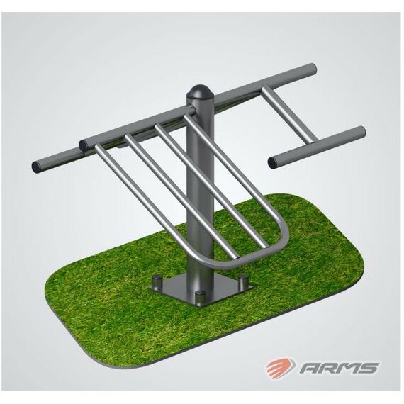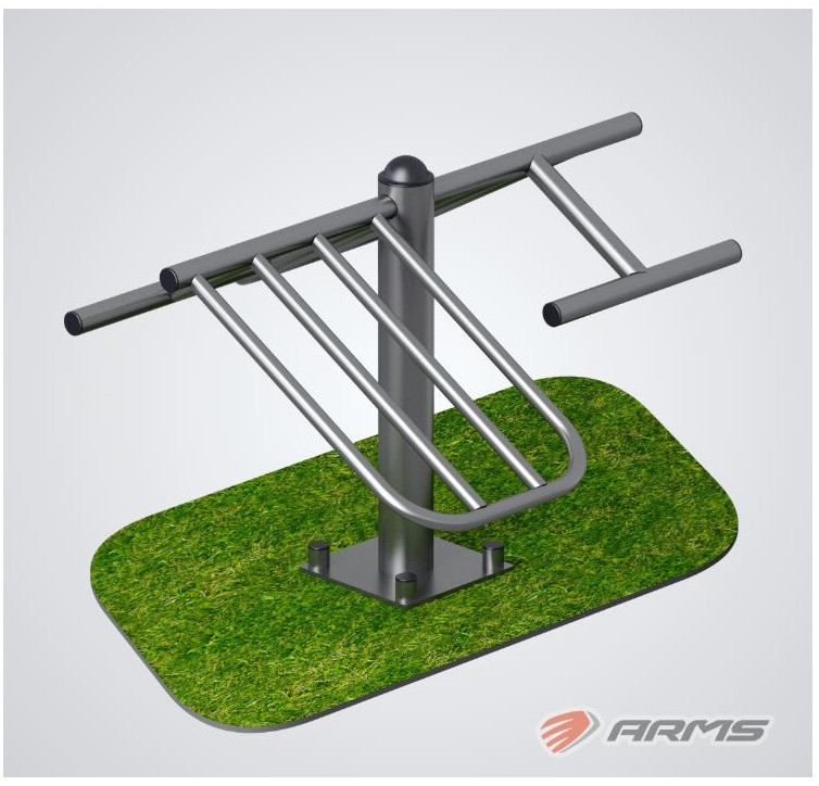 - Тренажер крепится на закладной элемент, который монтируется на глубину 500 мм и представляет собой платформу из листа с армирующей обвязкой. Размеры закладного элемента 300 х 300мм с межцентровым расстоянием шпилек 240 мм, высота шпильки 30 мм над уровнем закладного, диаметр шпильки 16 мм. Гайки утапливаются в антивандальное гнездо тренажера, оснащенное заглушкой от выкручивания
