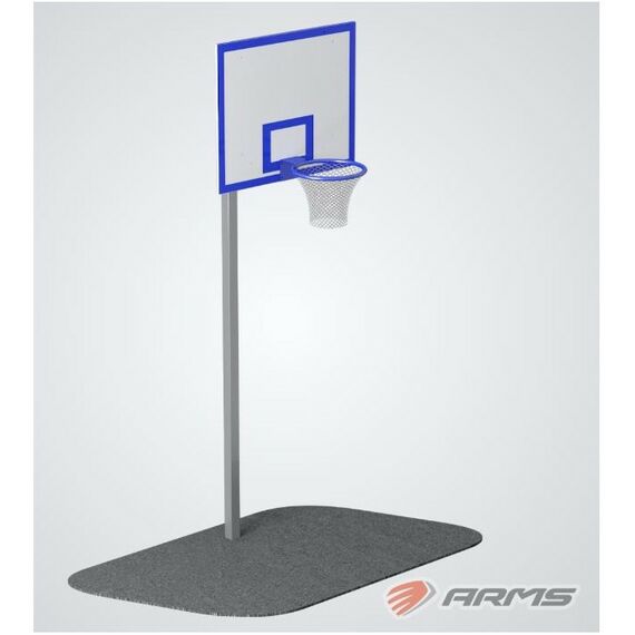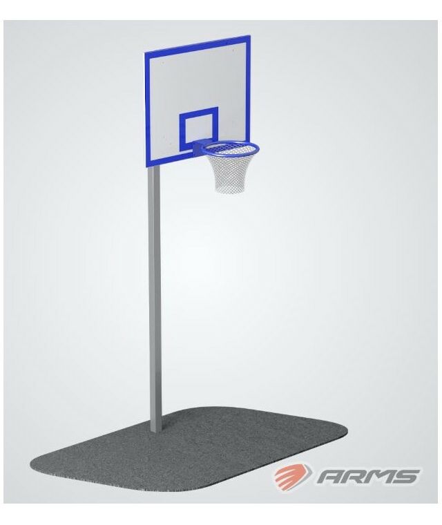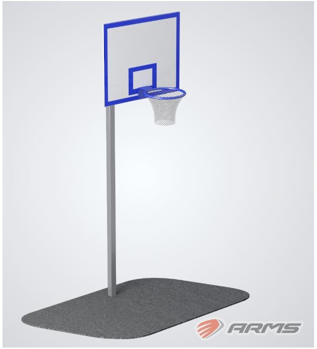 - Стойка оснащена щитом и кольцом с сеткой, соответствующей требованиям ГОСТ Р 56434-2015 . Щит размерами 1050 х 1800 мм изготовлен из влагостойкой фанеры 18 мм. Рама для щита из профиля 80 х 80 х 3, крепление щита к раме с помощью болтов