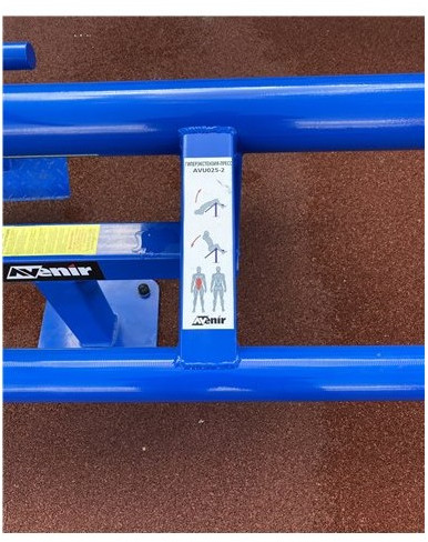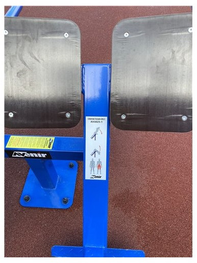 - На раме тренажера нанесена маркировка изготовителя: инструкция по безопасности, правила выполнения упражнений, QR-код на видео тренировку, телефон сервисного центра производителя.