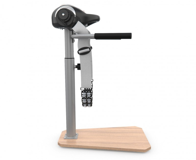 Массажёр имеет компактную и надёжную конструкцию. В качестве основания использована гальваническая труба диаметром 76 мм и толщиной 1,5 мм. Платформа выполнена из прочной древесины. Максимально допустимый вес пользователя — 110 кг. В комплектацию входят 2 массажных пояса, которые крепятся к передней консоли. Для удобства и безопасности предусмотрены два поручня по бокам.