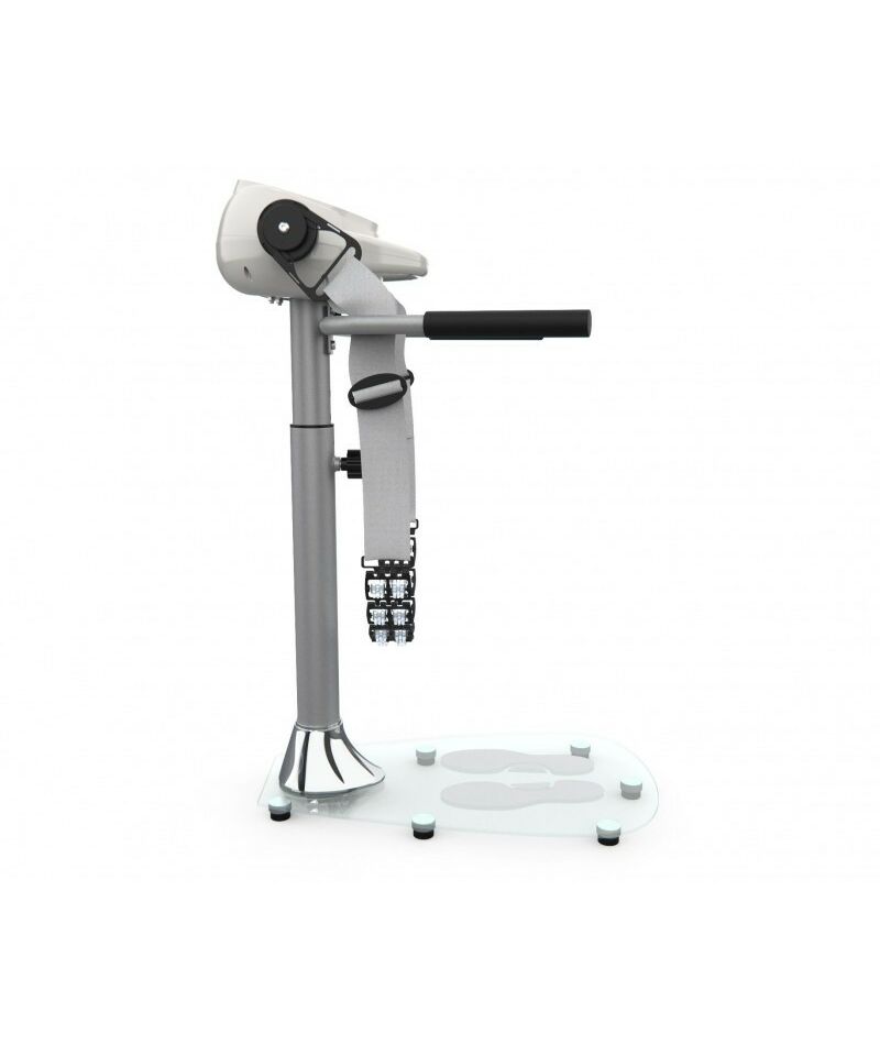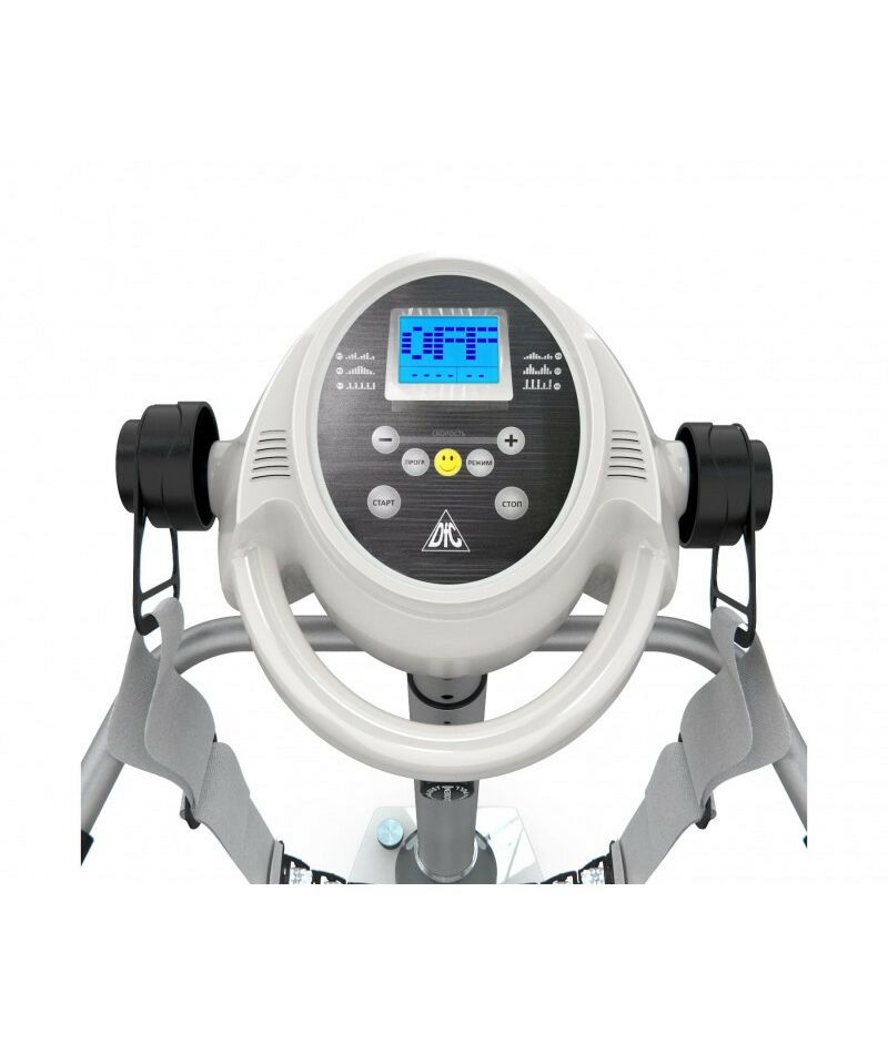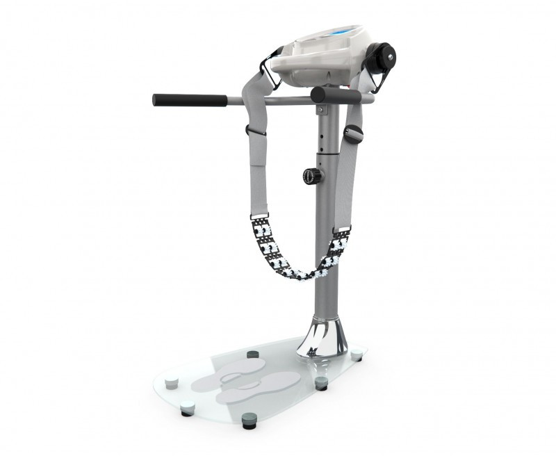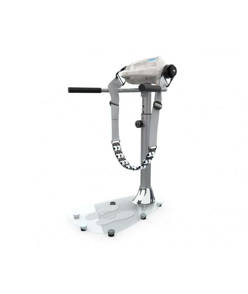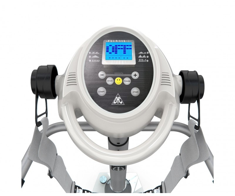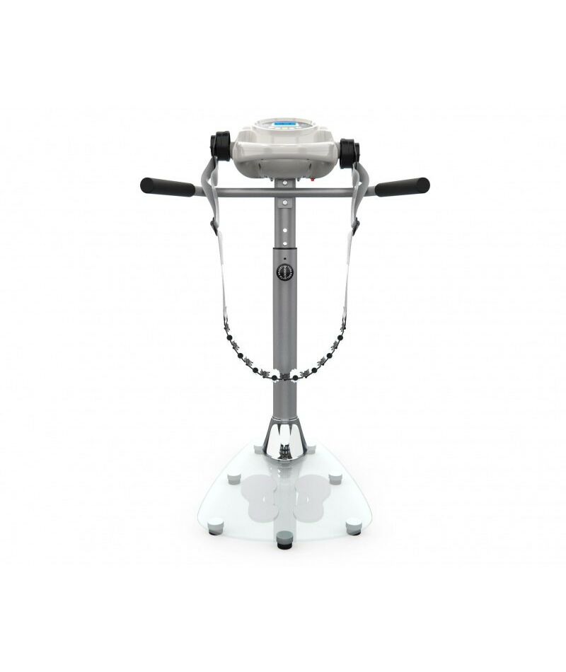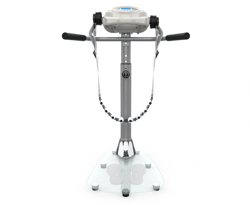 Массажёр имеет компактную и надёжную конструкцию. В качестве основания использована гальваническая труба диаметром 76 мм и толщиной 1,5 мм. Платформа выполнена из закалённого стекла. Максимально допустимый вес пользователя — 110 кг. В комплектацию входят 2 массажных пояса, которые крепятся к передней консоли. Для удобства и безопасности предусмотрены два поручня по бокам.