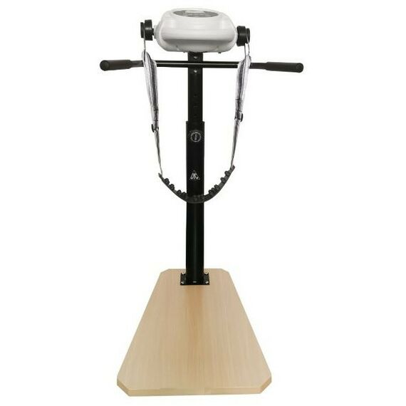 - Массажёр имеет компактную и надёжную конструкцию. В качестве основания использована гальваническая труба 76х1,5 мм. Платформа выполнена из высокопрочной древесины. Максимально допустимый вес пользователя — 100 кг. В комплектацию входит массажный пояс, который крепится к передней консоли. Для удобства и безопасности предусмотрены два поручня по бокам
