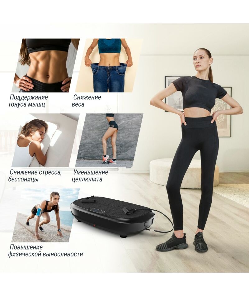 2. Удобство использования: Компактный и стильный дизайн позволяет легко разместить вибро тренажер в любом уголке вашего дома. Подходит для использования как новичками, так и опытными спортсменами.