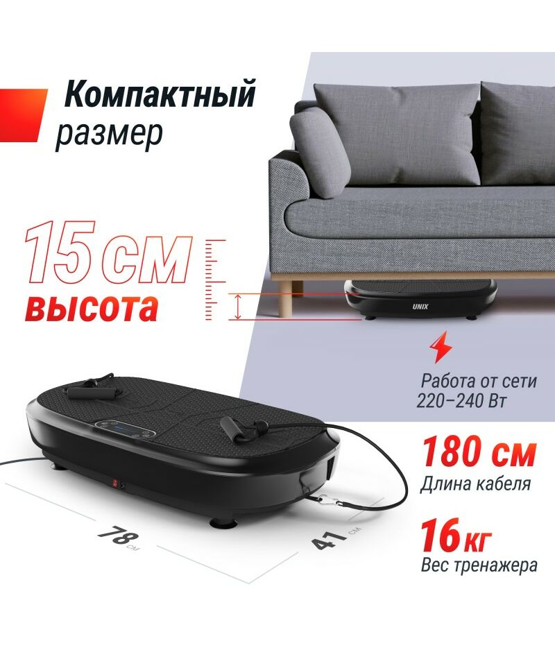С помощью виброплатформы UNIX Fit вы сможете эффективно тренироваться в любое время и в любом месте. Это отличный способ разнообразить тренировки и сделать их более интересными!