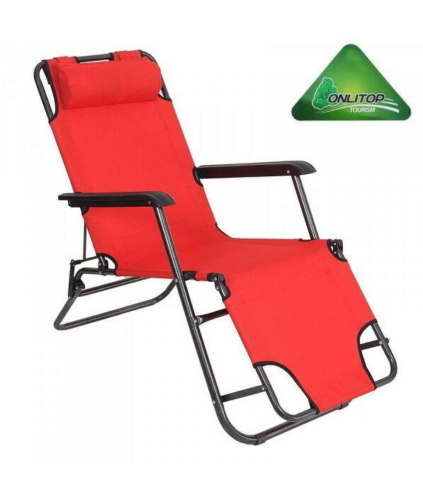 Кресло-шезлонг туристическое с подголовником ONLITOP 153х60х30 см цвет красный