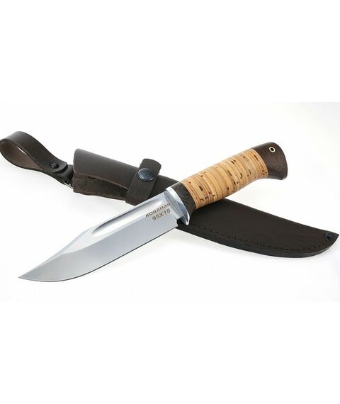 Нож комплектуется ножнами из натуральной кожи и сертификатом