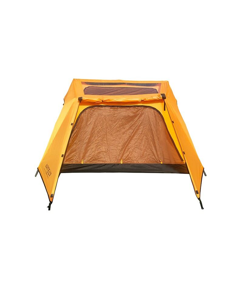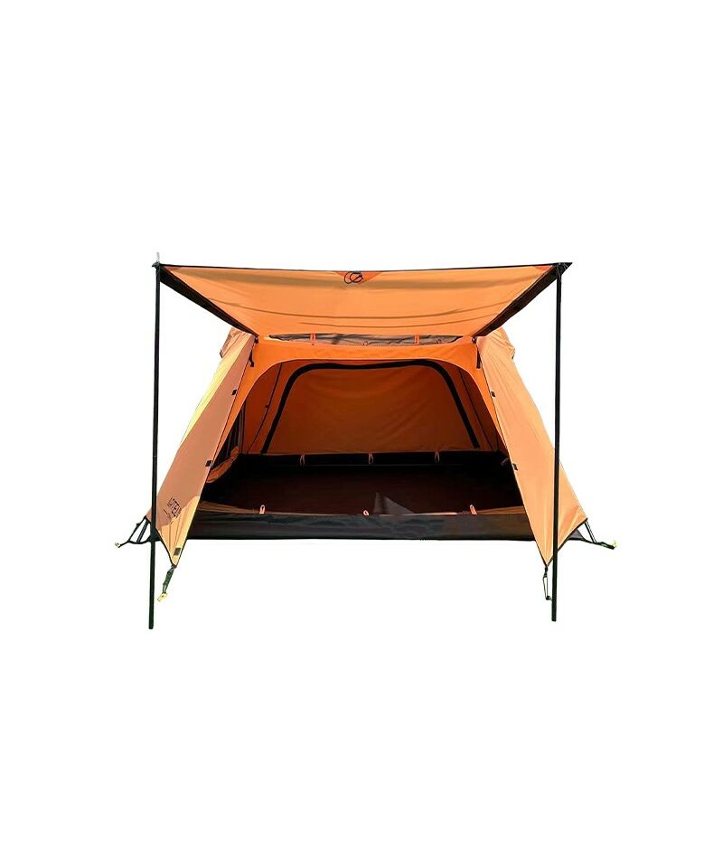Яркий оранжевый цвет стен и крыши хорошо заметен издалека, что снижает риск потерять лагерь из виду при исследовании ближайшей местности. Приятный оттенок наполняет внутреннее пространство гармонией, дарит положительные эмоции как в пасмурную, так и солнечную погоду. Черный пол маскирует частицы грязи, что исключает необходимость в периодической стирке и чистке химическими составами.