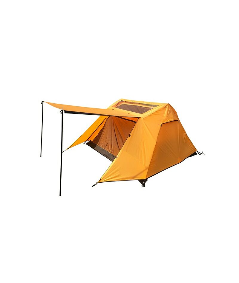 Широкий навес с легкостью раскрывается перед палаткой при помощи 2 шестов, что открывает возможность разместить под ним кухню или дорожную кладь. К тому же он защищает от попадания сквозь открытую дверь лучей солнца, предотвращает скопление у входа грязи при проливном дожде.