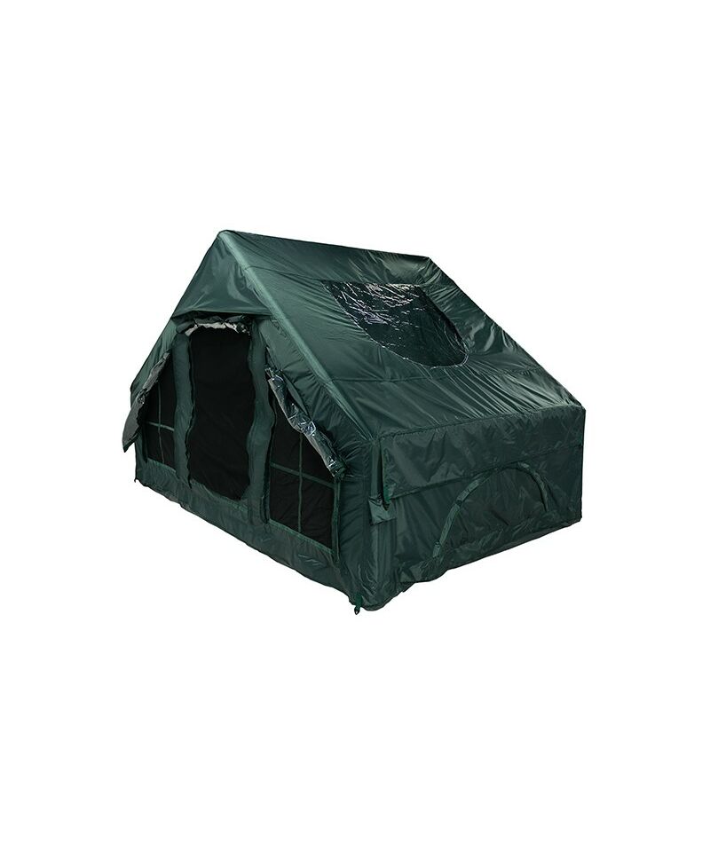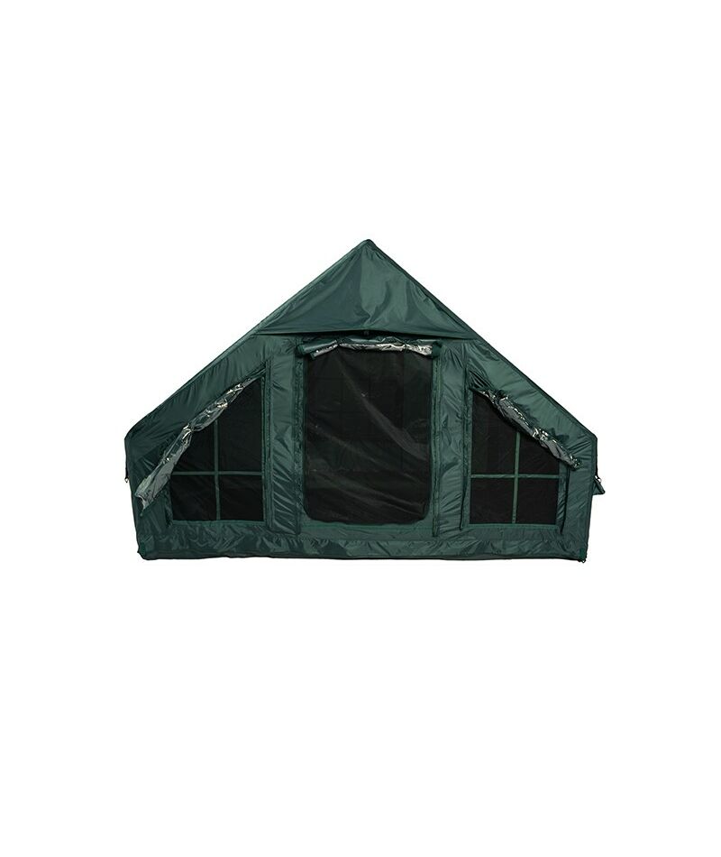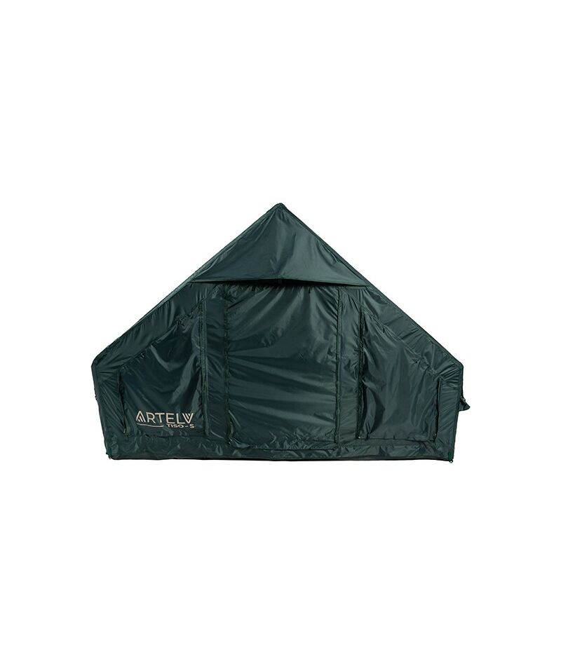 Двери и окна зеленой палатки ARTELV TISO-S заполняются светопроницаемым TPU, непрозрачной трехслойной тканью или москитной сеткой для благоприятного микроклимата.
