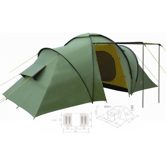 - Палатка Indiana SIERRA 4 предназначенна для длительных стоянок. Палатка SIERRA 4 рассчитана на 4 спальных места. Две комнаты и большой тамбур позволяют комфортно разместить людей и личные вещи внутри палатки (благодаря системе карманов), а в большом тамбур уместятся рюкзаки, обувь и уличное снаряжение. Палатка SIERRA 4 отличается высокой влагостойкостью, благодаря тенту, сделанному из полиестра и герметичному дну. Дуги из стеклопластика позволяют легко установить палатку без посторонней помощи.