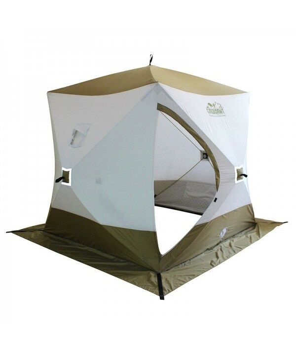 Палатка зимняя куб Следопыт Premium 1,8*1,8м, 3-х местн, 3 слоя, белый/олива
