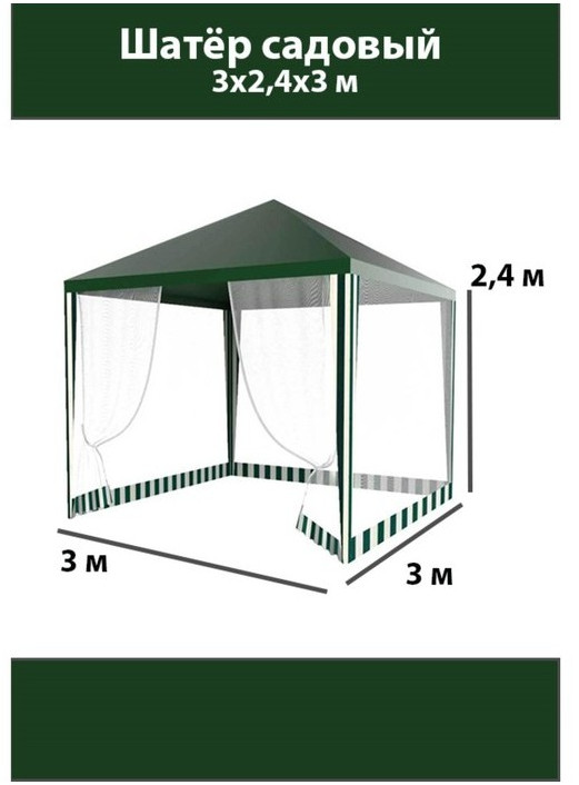 Шатер садовый закрытый 3*3м зеленый