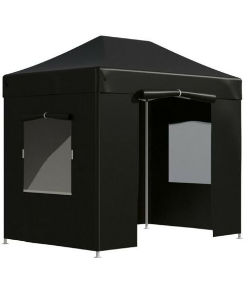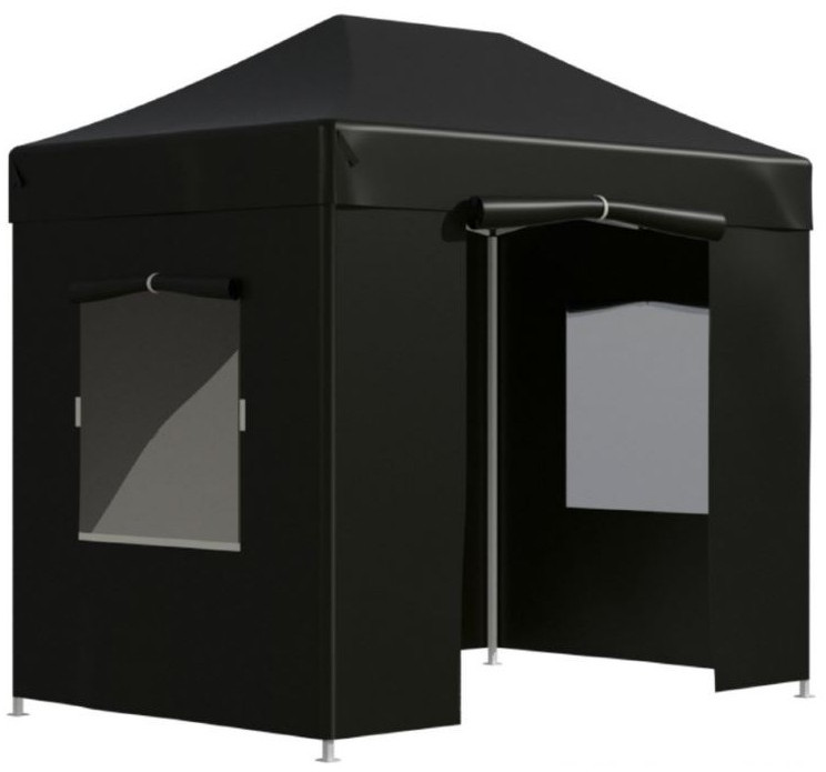 - Универсальный шатер-автомат квадратной формы с двумя большими окнами из ПВХ можно использовать как беседку на дачном участке