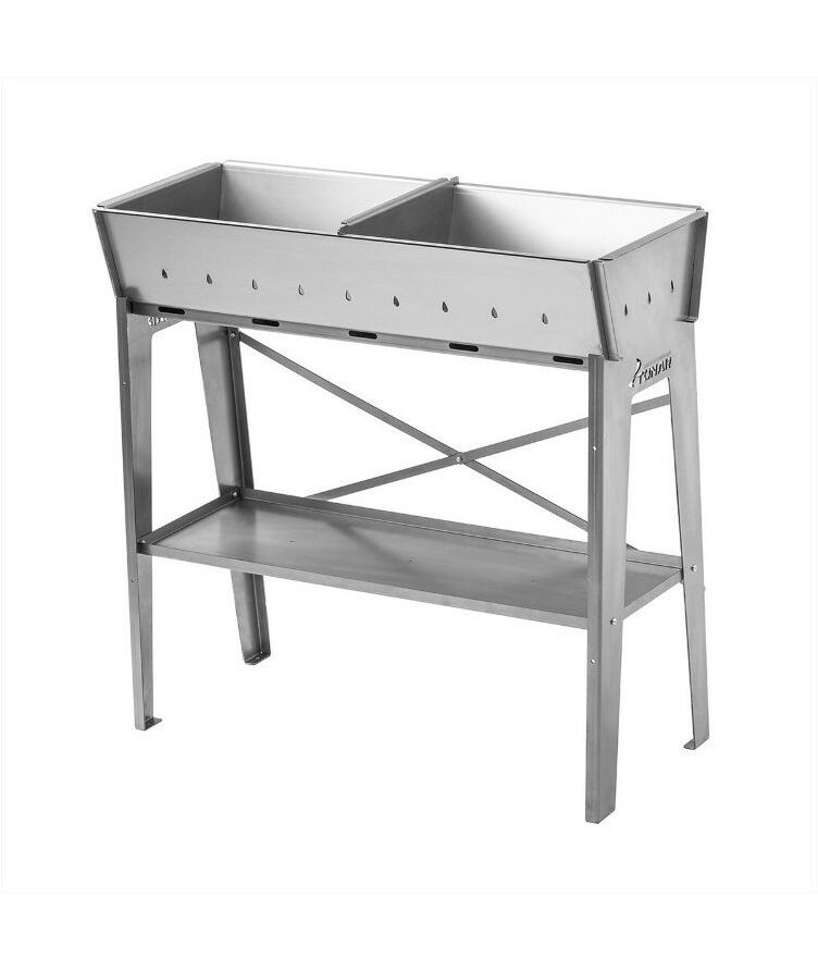 - Боковые отверстия обеспечивают оптимальный приток воздуха для поддержания горения и жара углей. Перемещающаяся перегородка позволяет сделать необходимую высоту слоя угля в каждой секции жаровни для готовки определенного блюда. Глубина жаровни - 15 см. Трапециевидная форма жарочной камеры создает оптимальную температуру для прожаривания шашлыка.