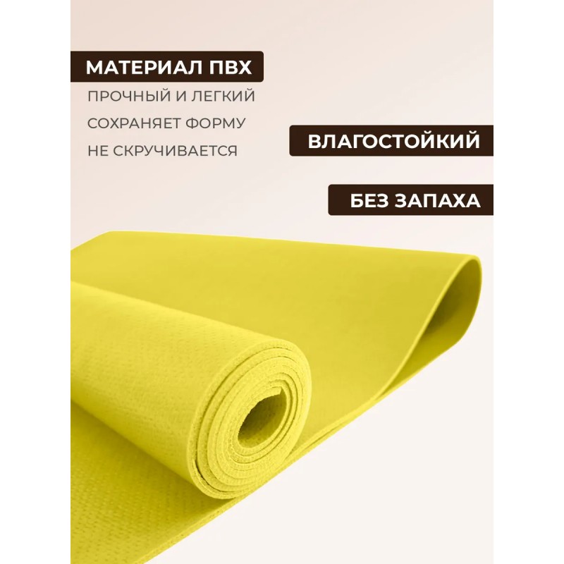 Мягкий и удобный коврик изготовлен из нетоксичных материалов, поэтому абсолютно безвреден для вашей кожи. Не скользит и имеет довольно большой размер (185 см), что поможет расслабиться и сосредоточиться на выполнении асан.