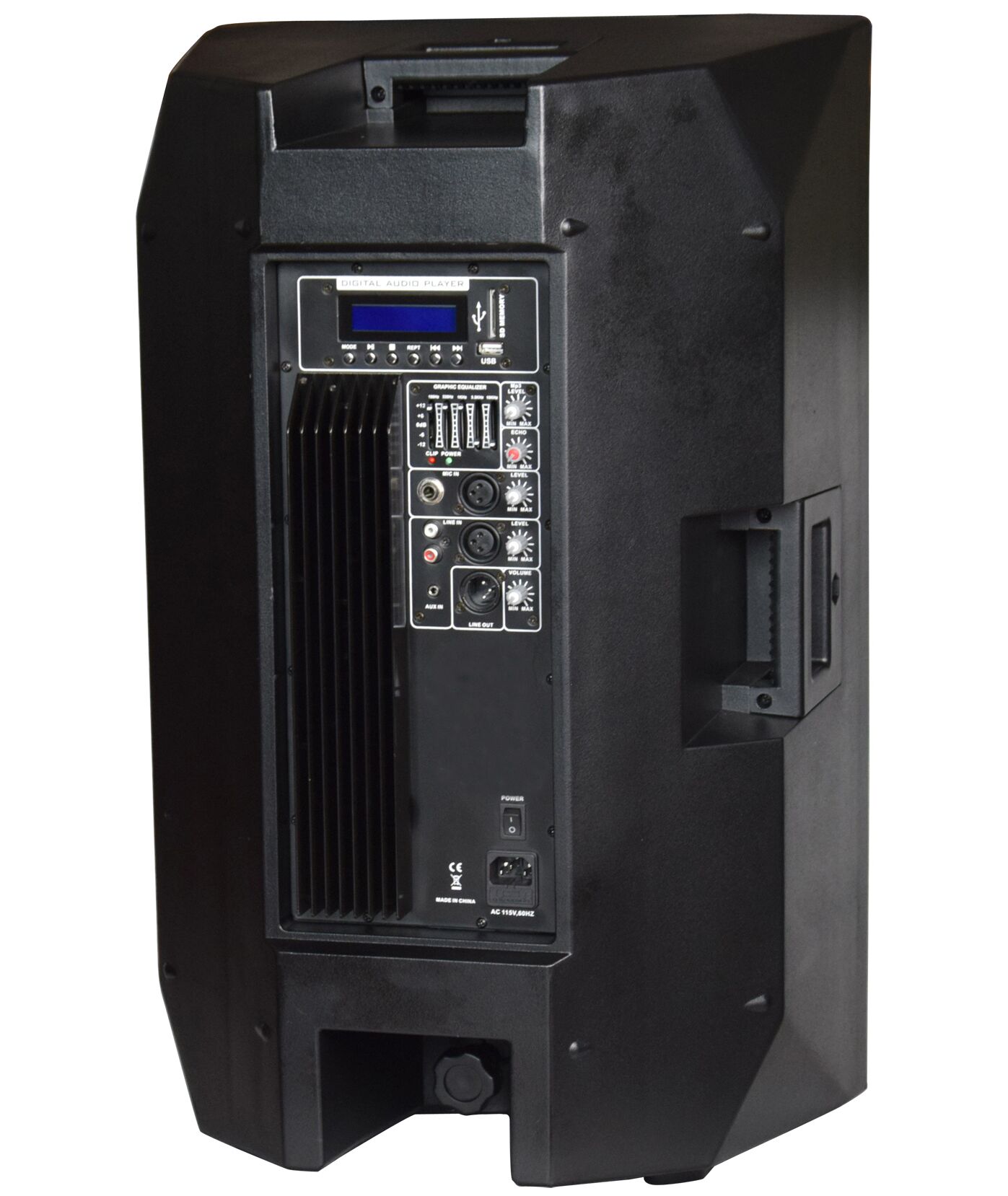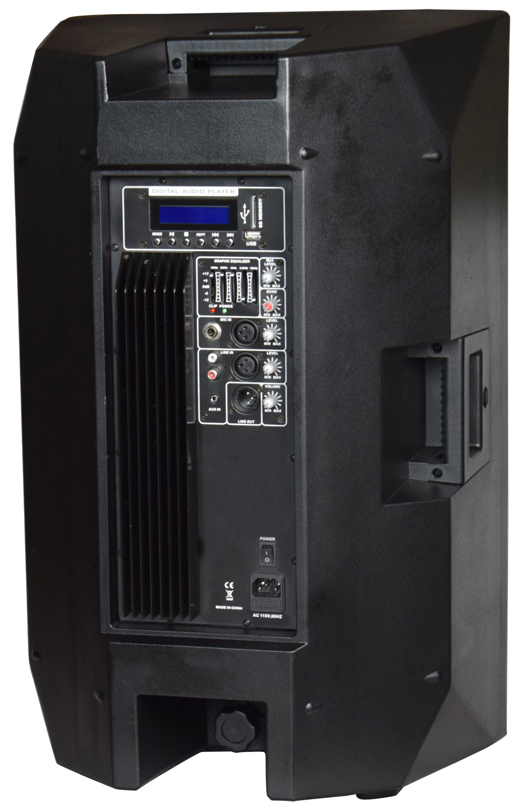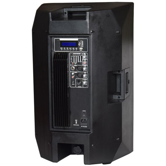 Акустическая система активная двухполосная, MP3 плеер (USB/SD/Bluetooth/FM), динамик: 15", драйвер: 1.75", усилитель класса H (Bi-Amp) мощностью 300 Вт+ 50 Вт RMS, 5-и полосный эквалайзер, частотный диапазон: 45 Гц-20 кГц, Peak SPL: 124 дБ