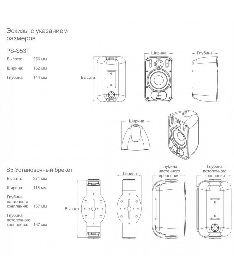 Настенная акустическая система Sonance PS-S53T Black 5.25", двухполосная, 30/15/7.5 Вт@70/100 В [40148]