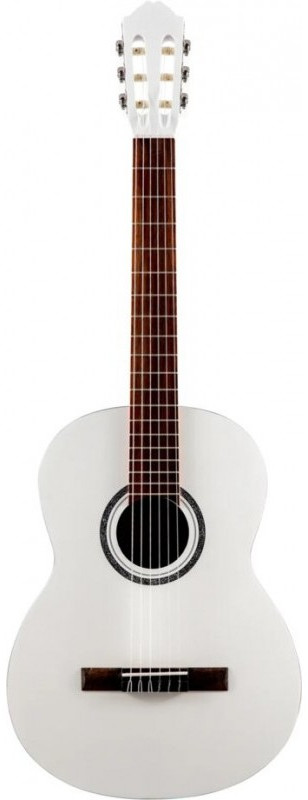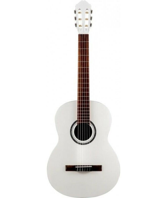 Полноразмерная 4/4 классическая гитара белого цвета с матовой отделкой.