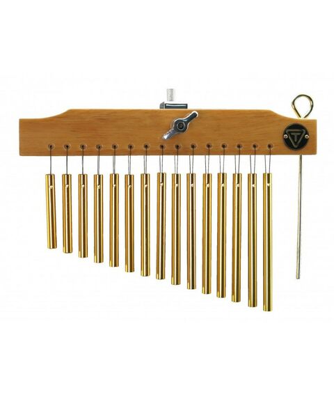 Бар Чаймс TYCOON TIM-15 G состоит из ряда полых алюминиевых брусков (чаймсов) анодированных золотом разной длинны, закрепленных на основании. Основание чимеса выполнено из сиамского дуба.