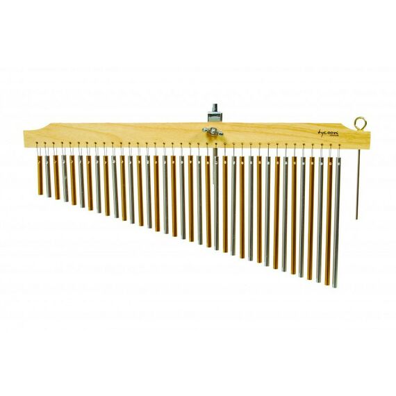 Бар Чаймс TYCOON TIM-36 G N состоит из ряда полых алюминиевых брусков (чаймсов) анодированных золотом разной длинны, закрепленных на основании. Основание чимеса выполнено из дуба.