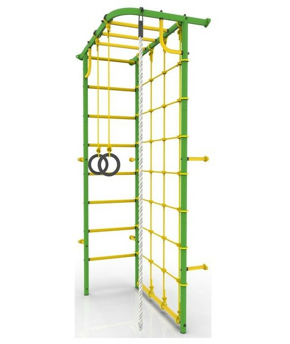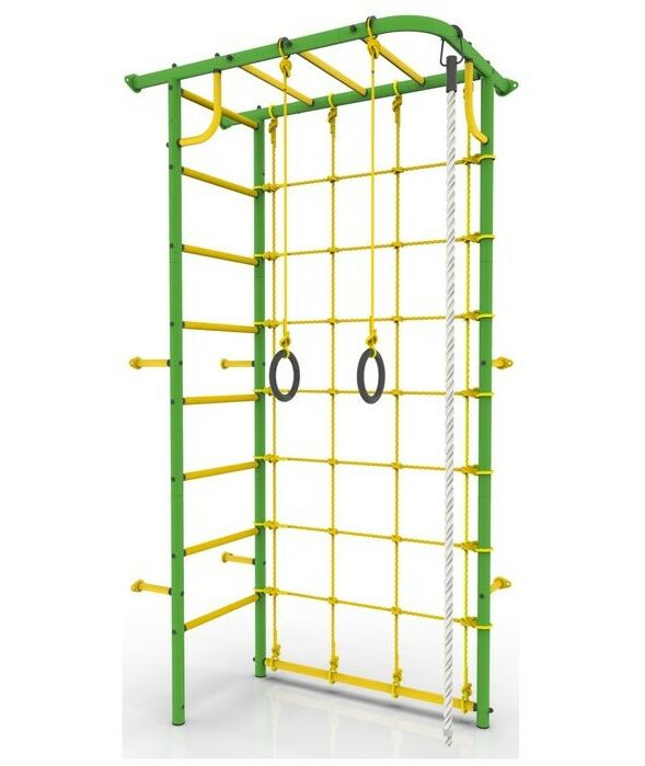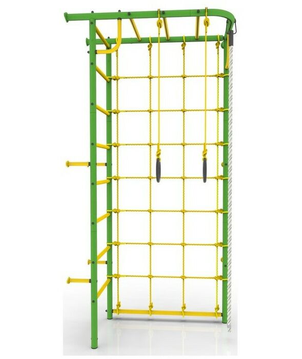 Каркас комплекса изготовлен из трубы диаметром 42 мм, покраска порошковая. Ступени шведской стенки изготовлены из трубы 25 мм, имеют массажное и противоскользящее ПВХ покрытие.