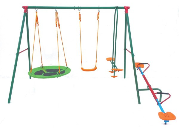 Материал сидений качелей - пластмасса, устойчивая к воздействию солнечных лучей.