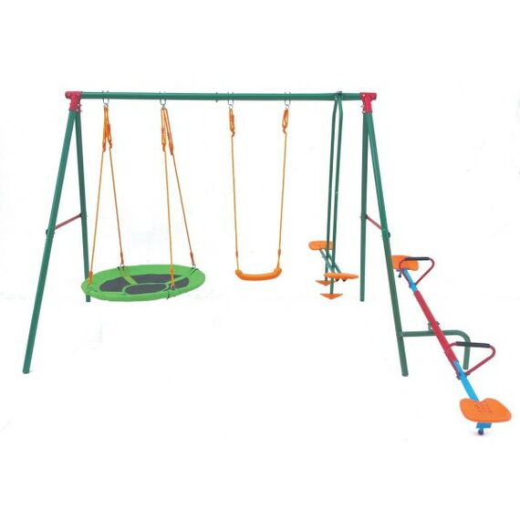 В комплекте: верёвочные качели, качели-качалки для двоих и качели-гнездо.