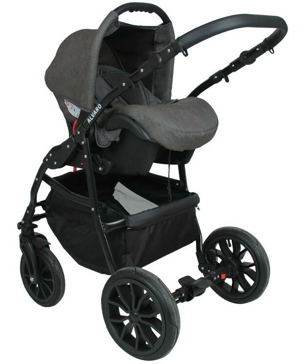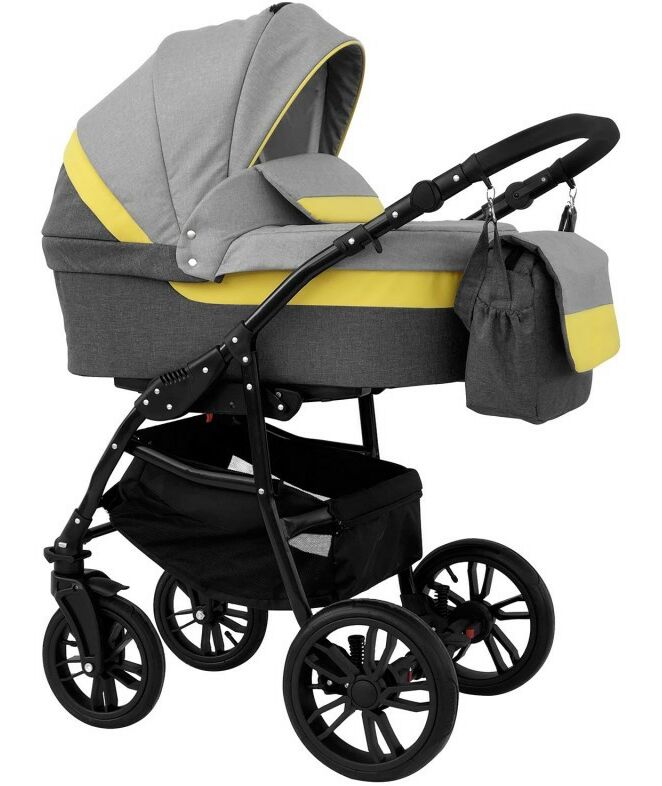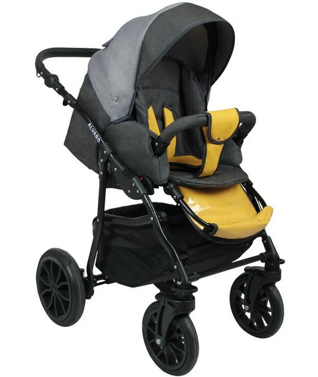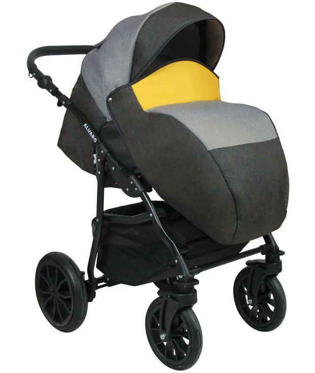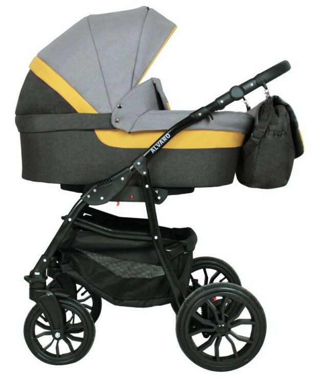 Коляска 3в1 Alis ALVARO F 02 т.серый+св.серый+желтая кожа