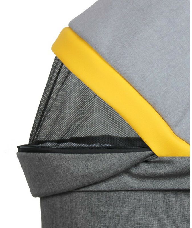 - От солнца защитит козырек, кроме того, в жаркую погоду пригодится вставка из москитной сетки для вентиляции, которая закрывается текстильным клапаном на молнии. Снятая люлька мягко и безопасно укачивает малыша