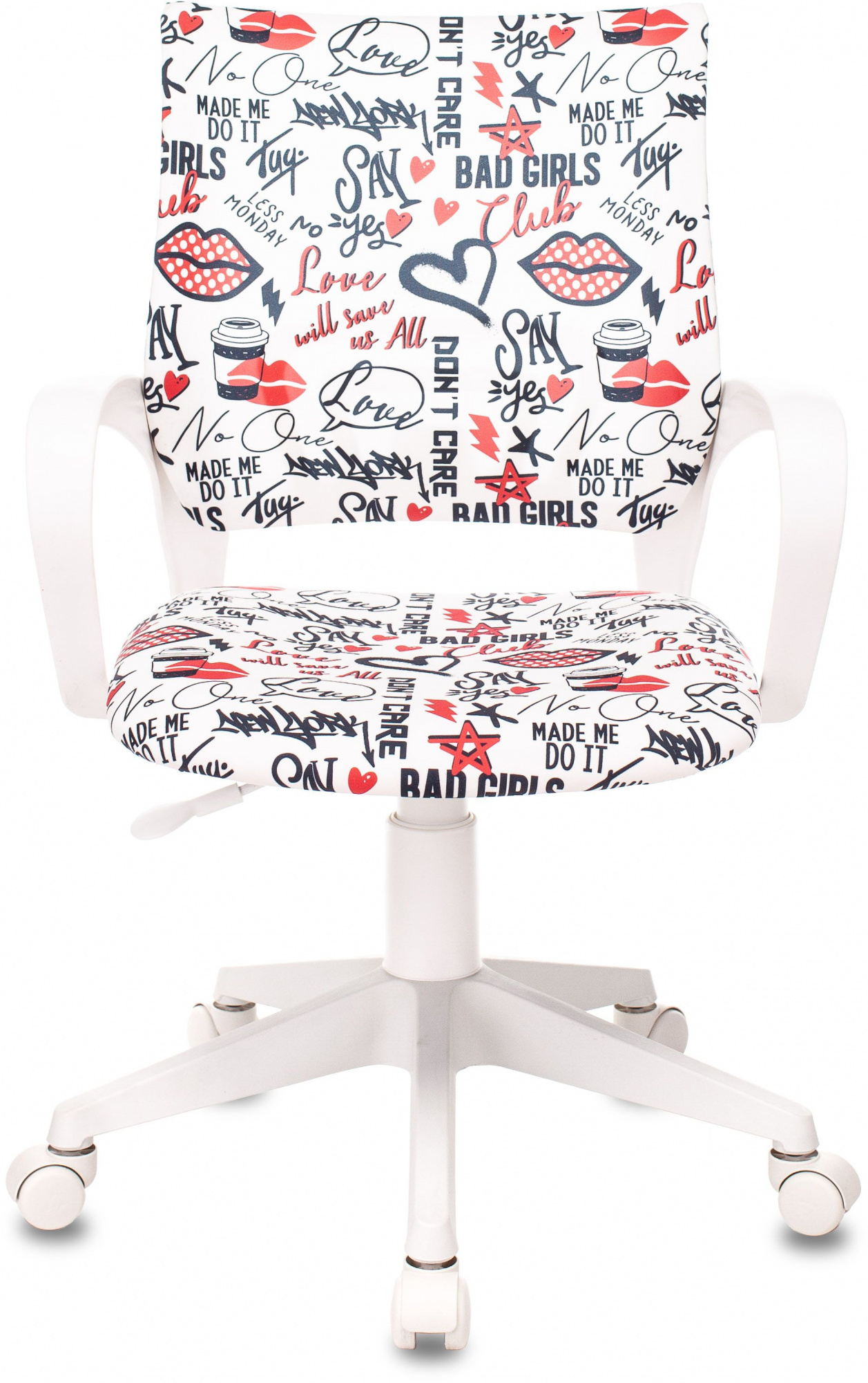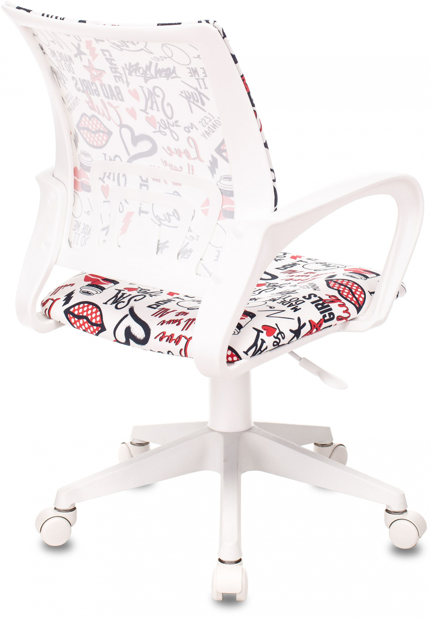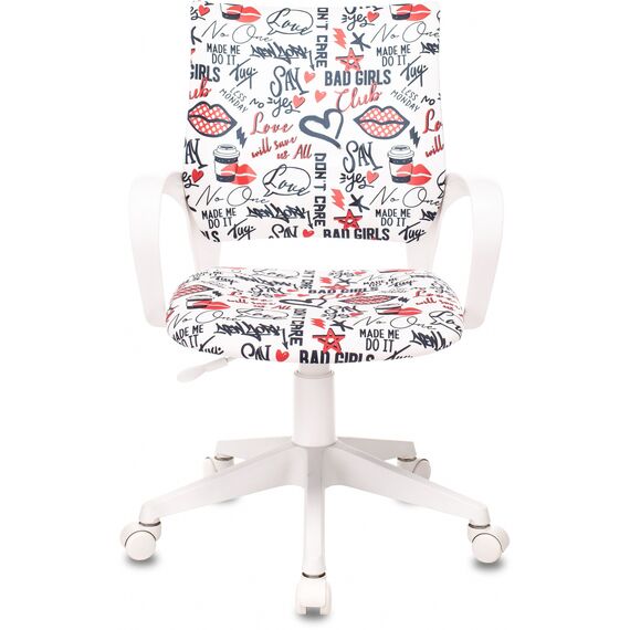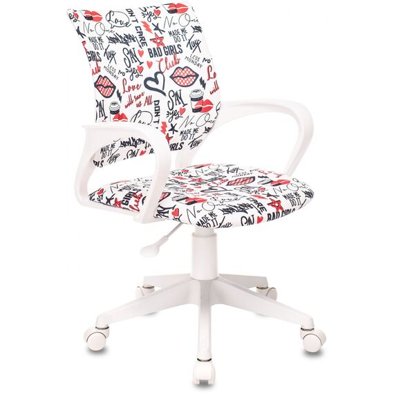 Кресло детское Бюрократ BUROKIDS 1 W-REDLIPS мультиколор красные губы крестов. пластик пластик белый