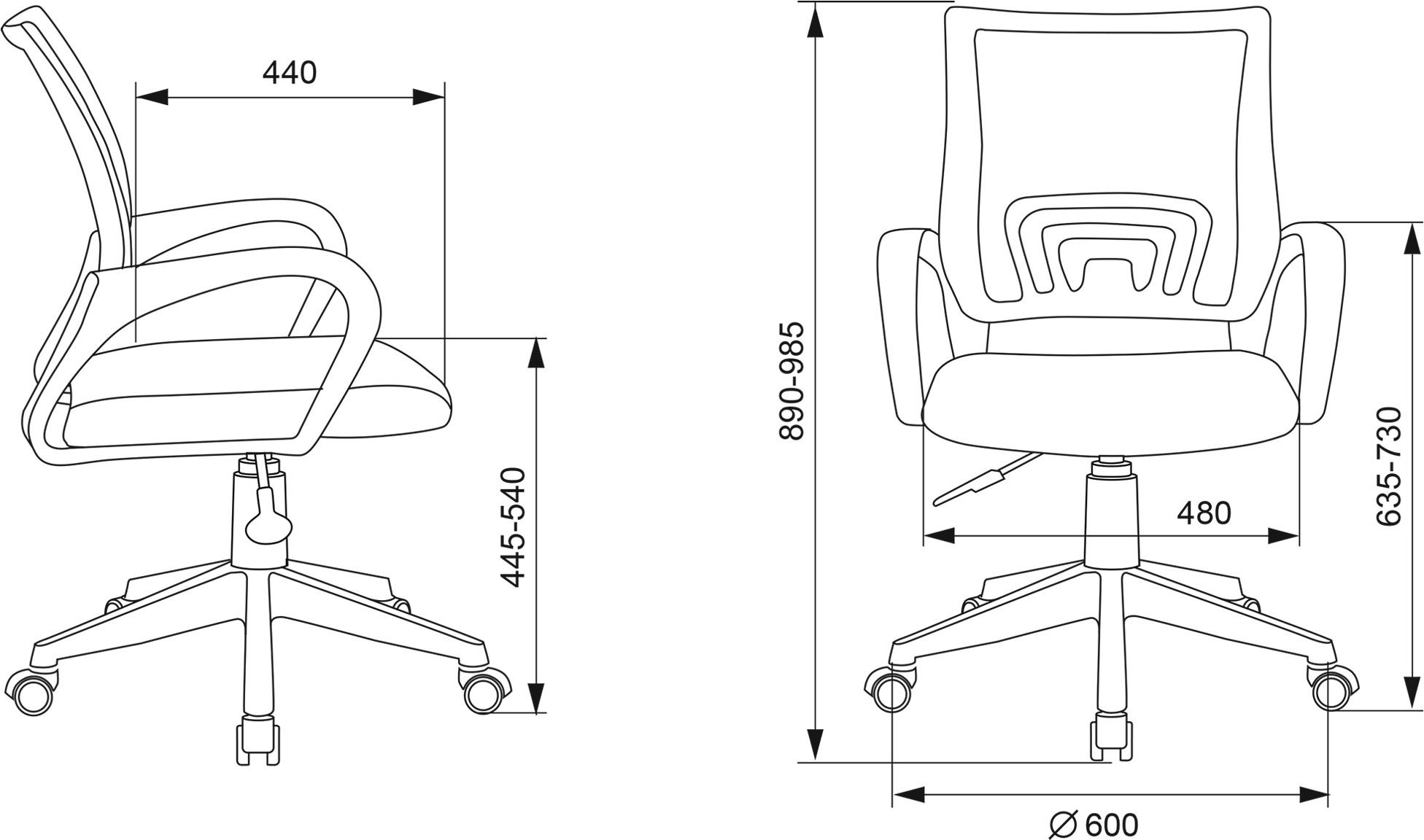 | Высота с подлокотниками MIN | 635 мм |