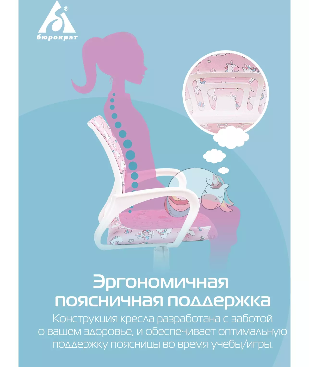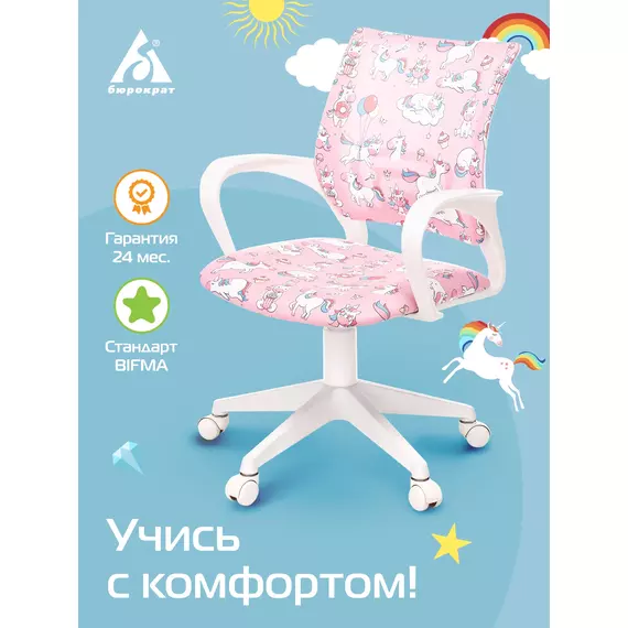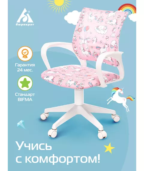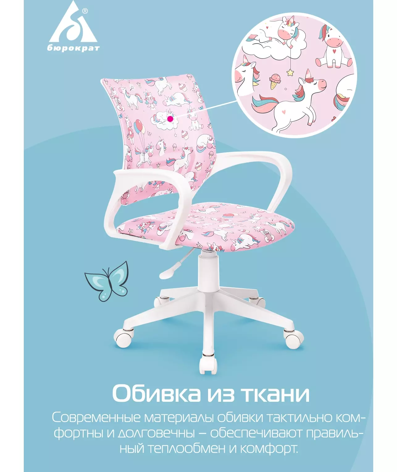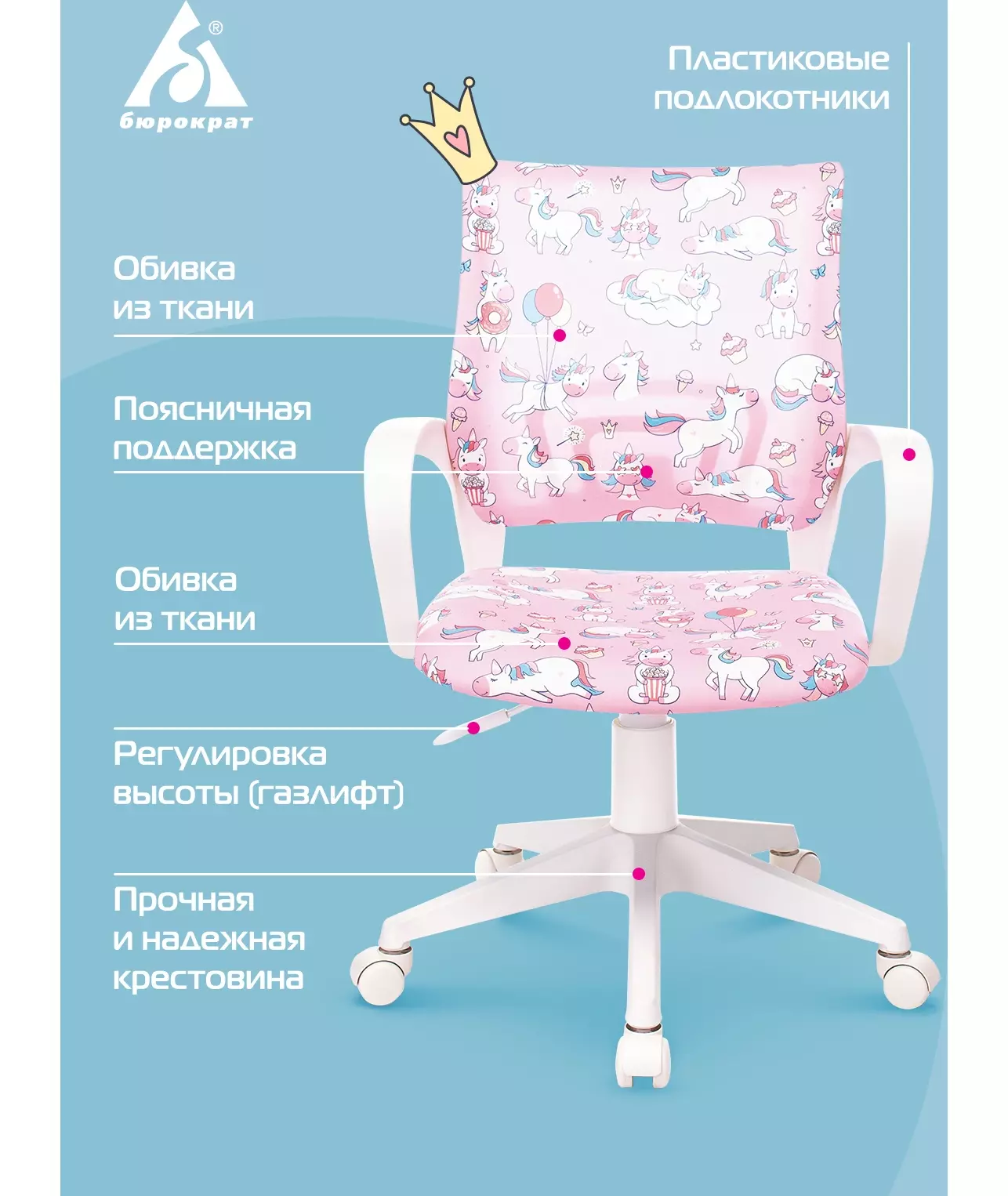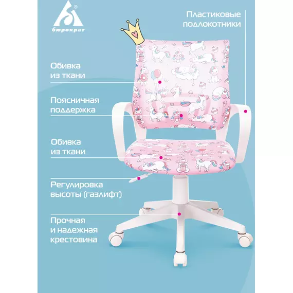 Кресло детское Бюрократ BUROKIDS 1 W-UNICORN розовый единороги крестов. пластик пластик белый