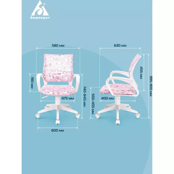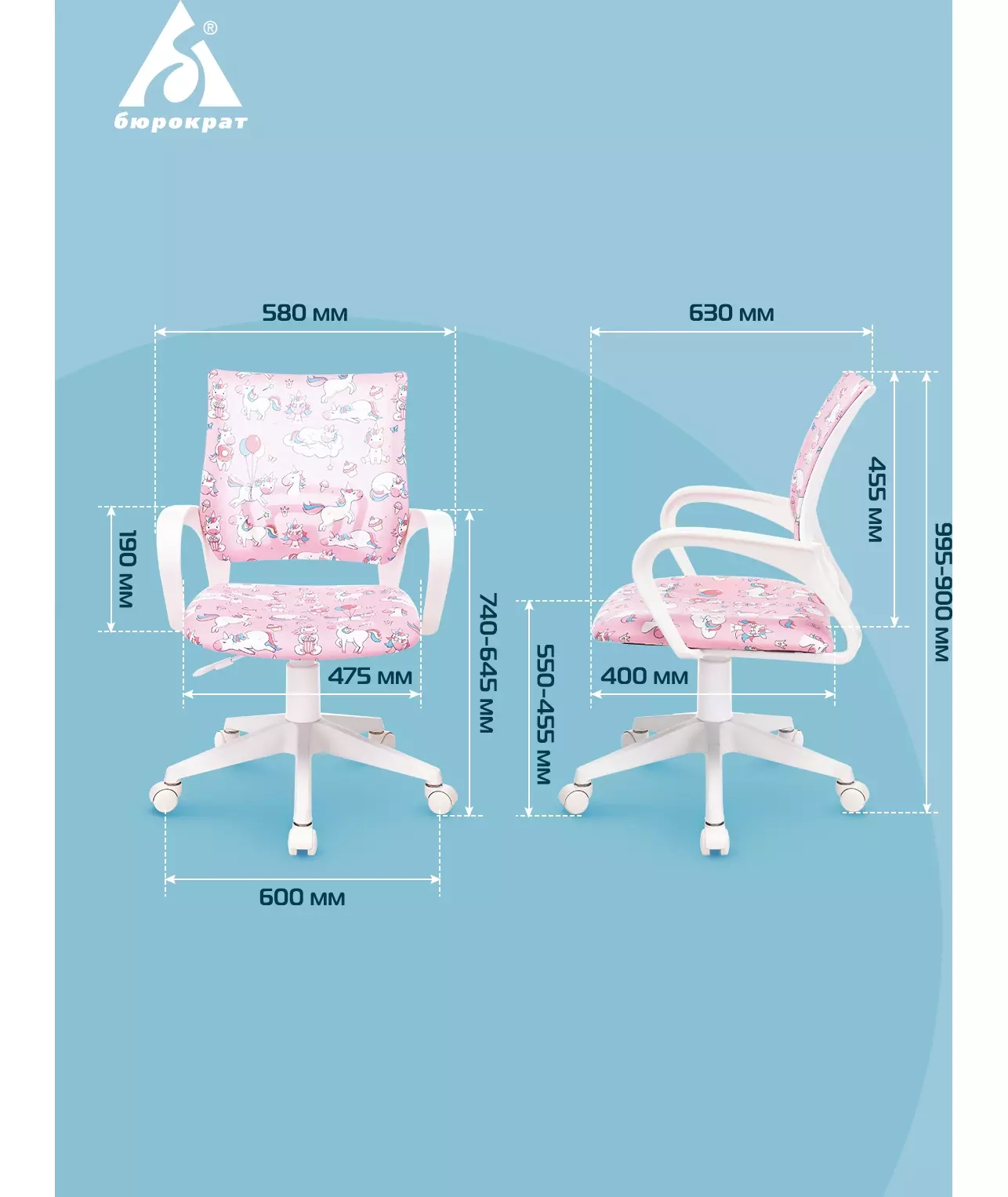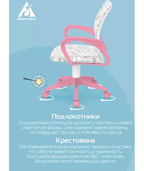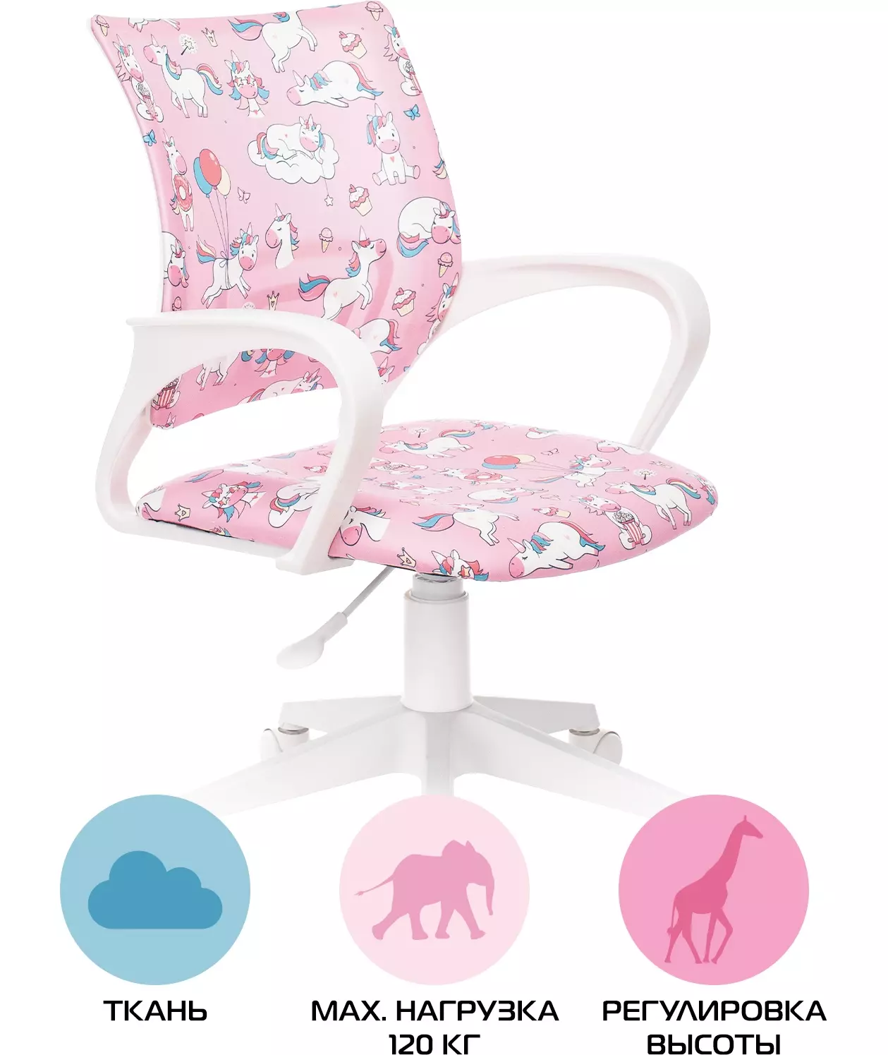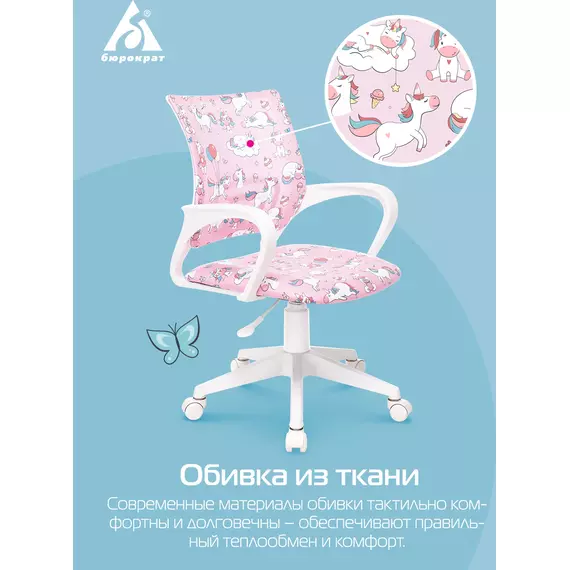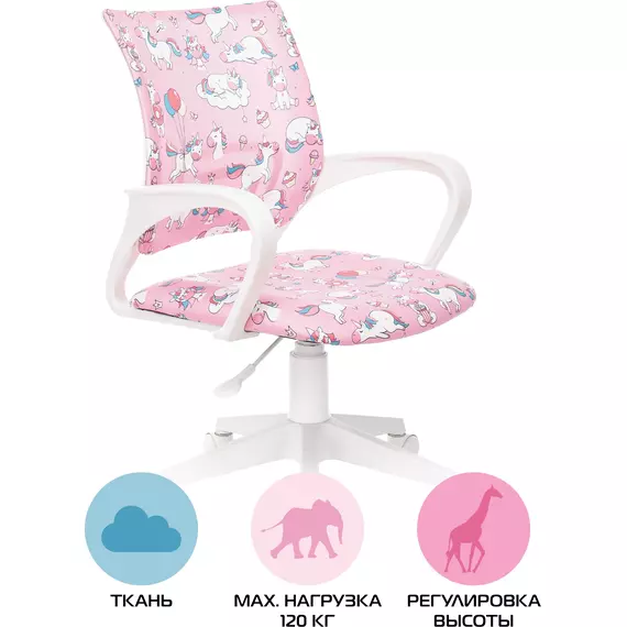 Кресло детское Бюрократ BUROKIDS 1 W-UNICORN розовый единороги крестов. пластик пластик белый