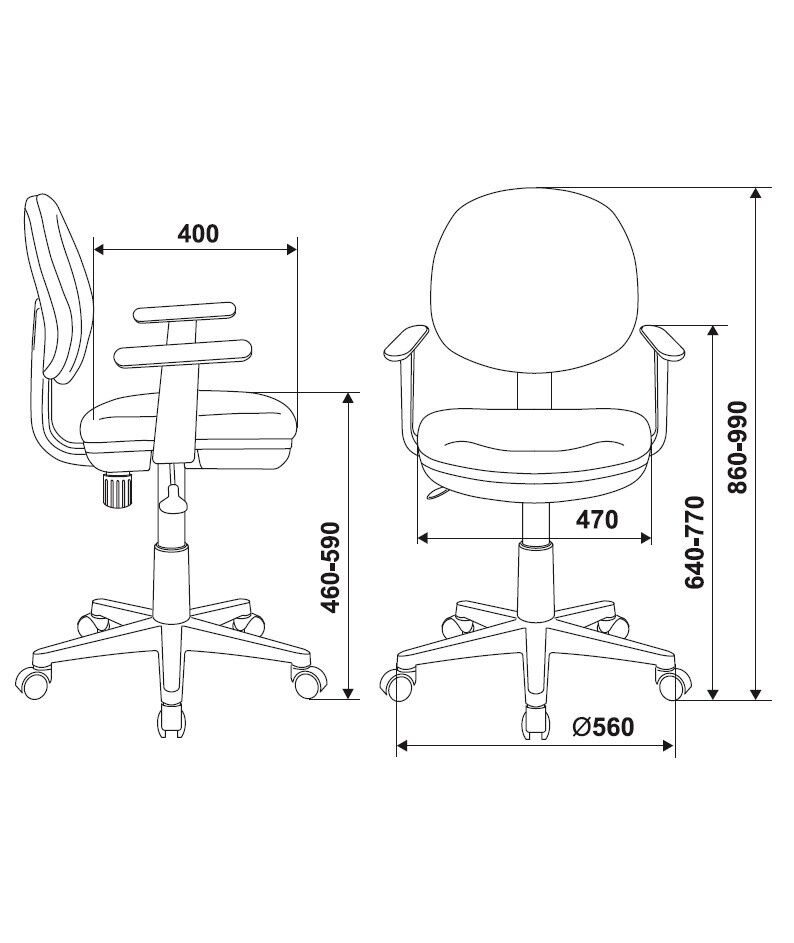| Высота с подлокотниками MIN | 640 мм |