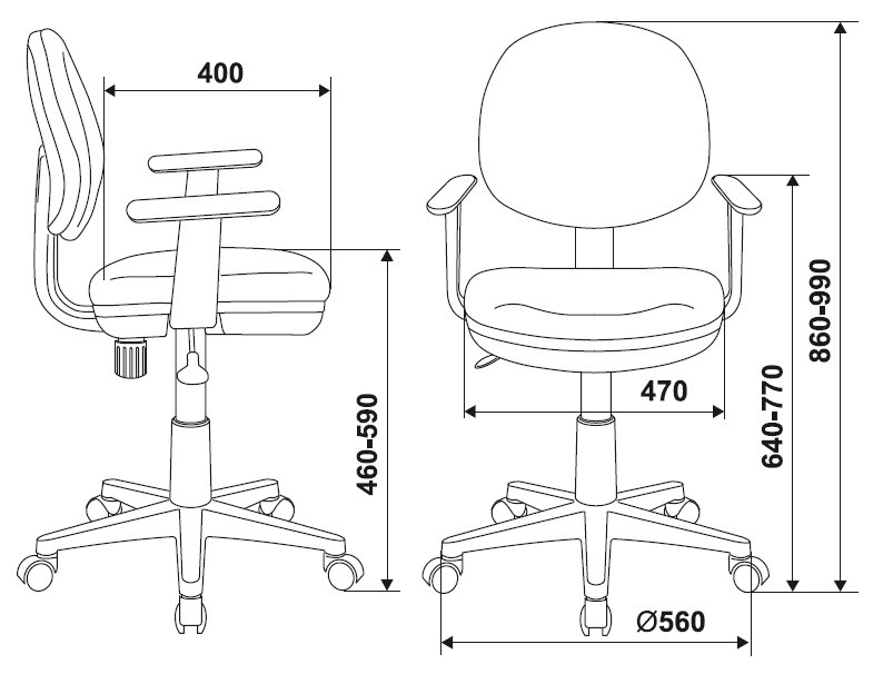| Высота с подлокотниками MIN | 640 мм |