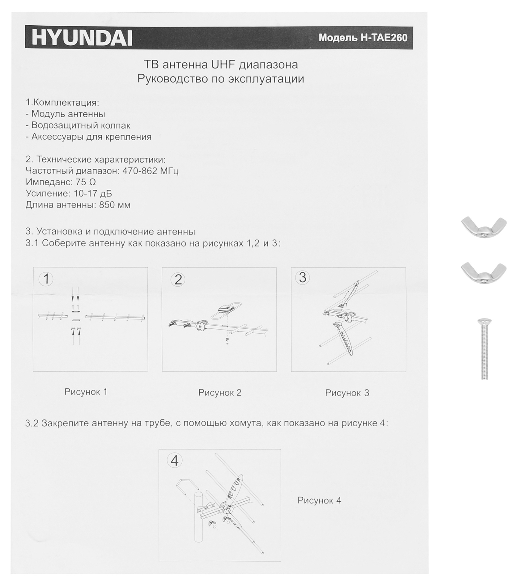 Антенна телевизионная Hyundai H-TAE260 13дБ пассивная серебристый