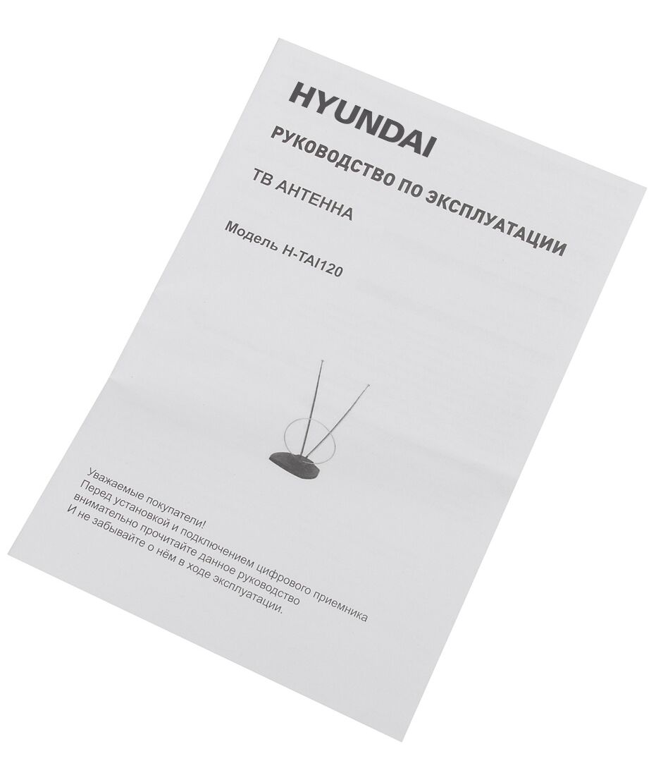 Антенна телевизионная Hyundai H-TAI120 3дБ пассивная черный каб.:1.35м