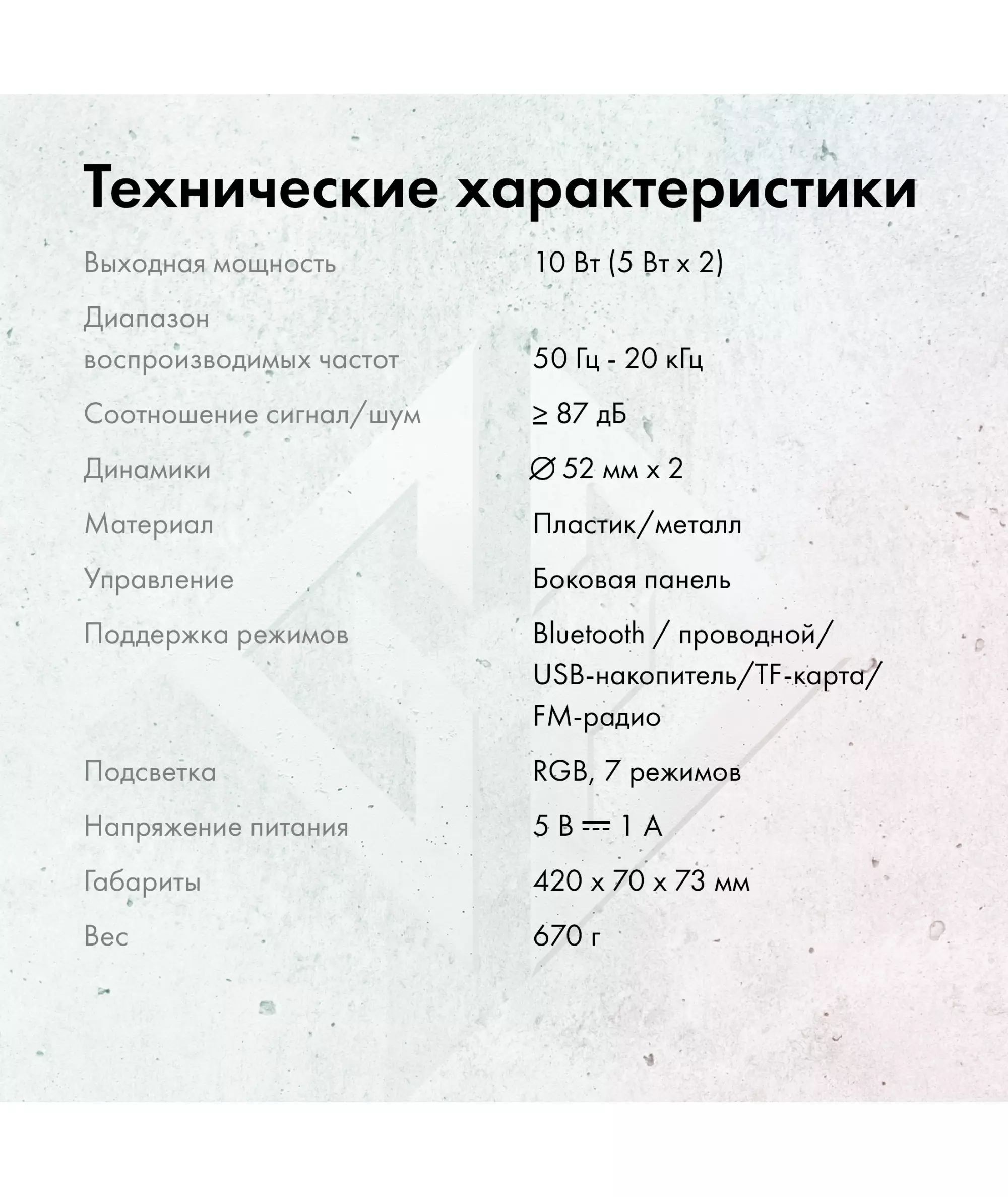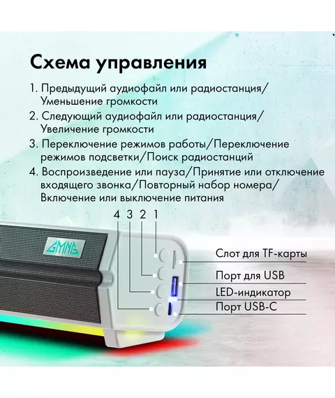 | Режимы прослушивания | USB-подключение, Bluetooth, TF-карта, FM |
