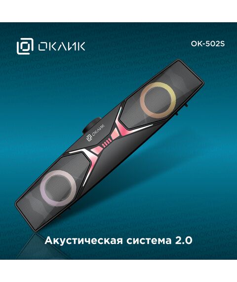 Саундбар Oklick OK-502S 2.0, 6Вт, черный [1879644]