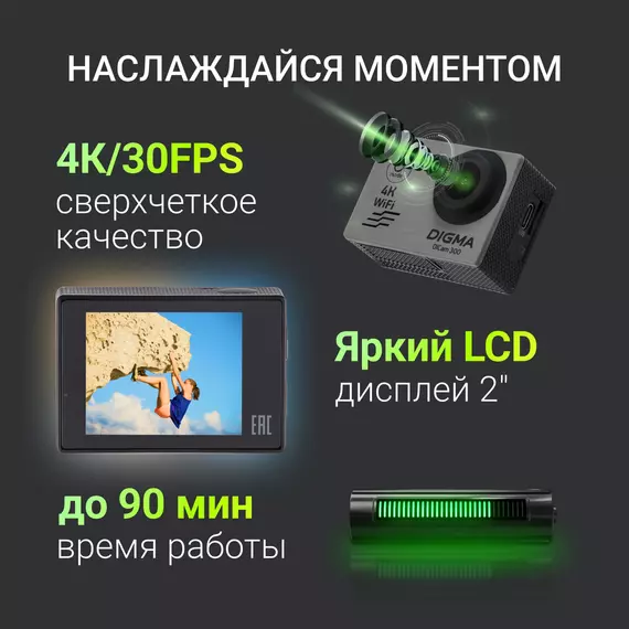 Экшн-камера Digma DiCam 300 4K, WiFi, серый