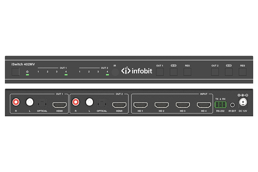 Бесподрывный презентационный коммутатор HDMI cигнала Infobit iSwitch 402MV 4K60 4x2 HDMI с мультивьювером