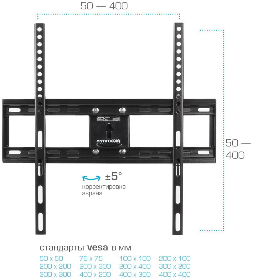 | Подходит для телевизоров c диагональю | 32", 37", 39", 40", 42", 43", 46", 48", 50", 52", 55", 60" |
