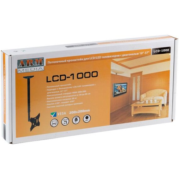 Кронштейн для телевизора ARM Media LCD-1000 черный 10"-37" макс.30кг потолочный поворот и наклон