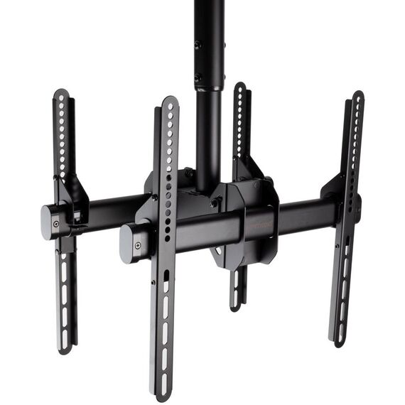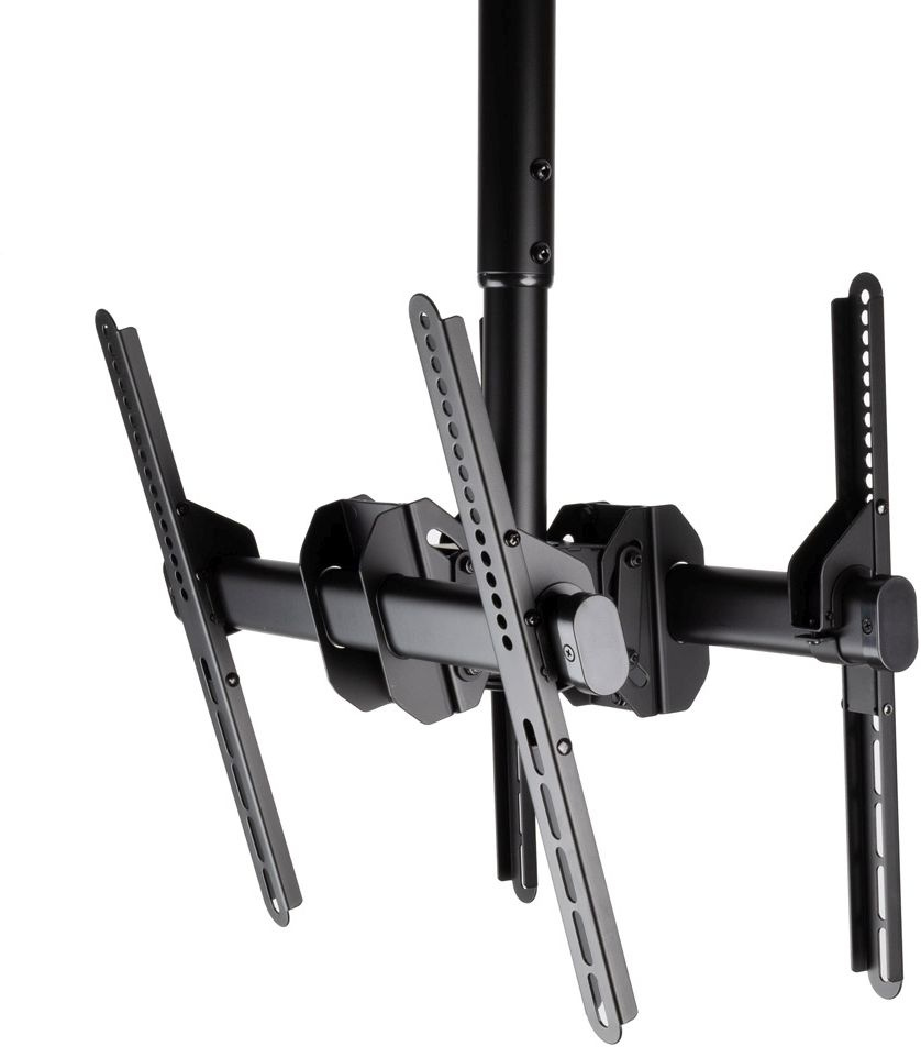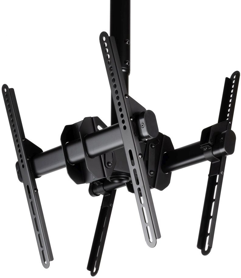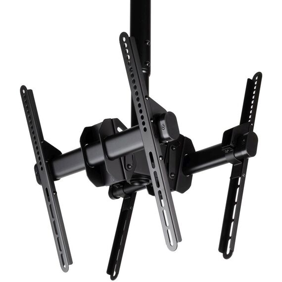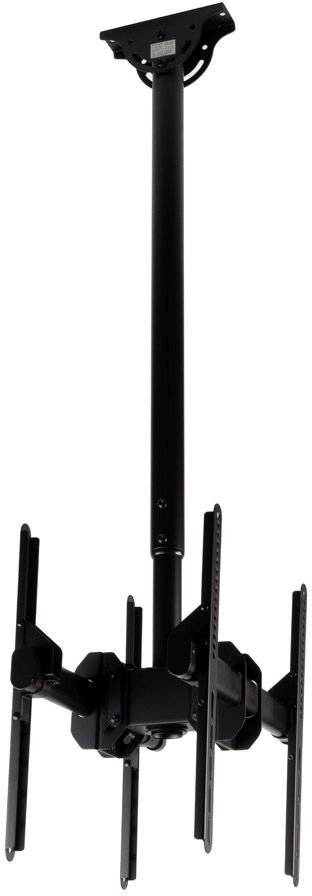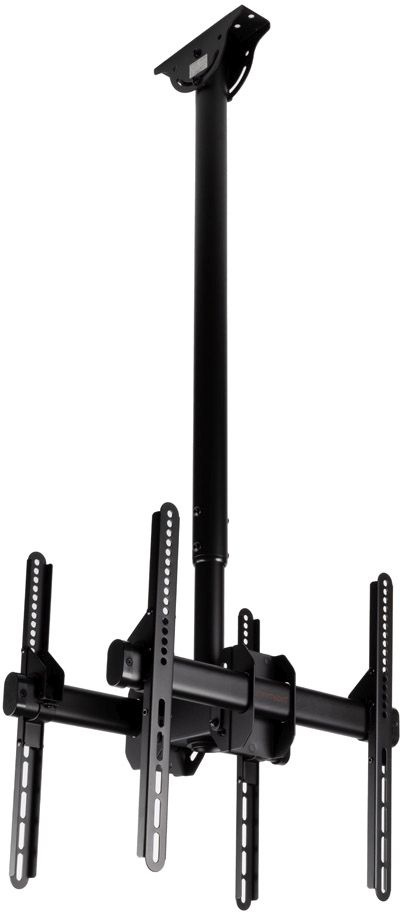 Потолочный кронштейн для LCD/LED телевизоров размером от 26 до 65 дюймов с максимальным весом до 2 x 45 кг с возможностью крепления на наклонный потолок. Надежная стальная конструкция. Регулировка наклона +5 -20 и углом поворота ±180 градусов. Максимальные крепежные размеры 400х400 мм.