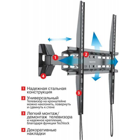 | Подходит для телевизоров c диагональю | 26", 28", 32", 37", 39", 40", 42", 46", 48", 50", 52", 55" |
